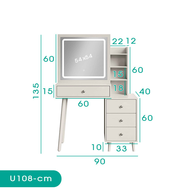 میز آرایش اسمردیس مدل U108 با ظاهری ساده و زیبا، مناسب دکوراسیون منزل یا اداری با طراحی مدرن است. میز آرایش اسمردیس مدل U108 دارای پاف، آینه، کشو و قفسات متعدد می باشد.