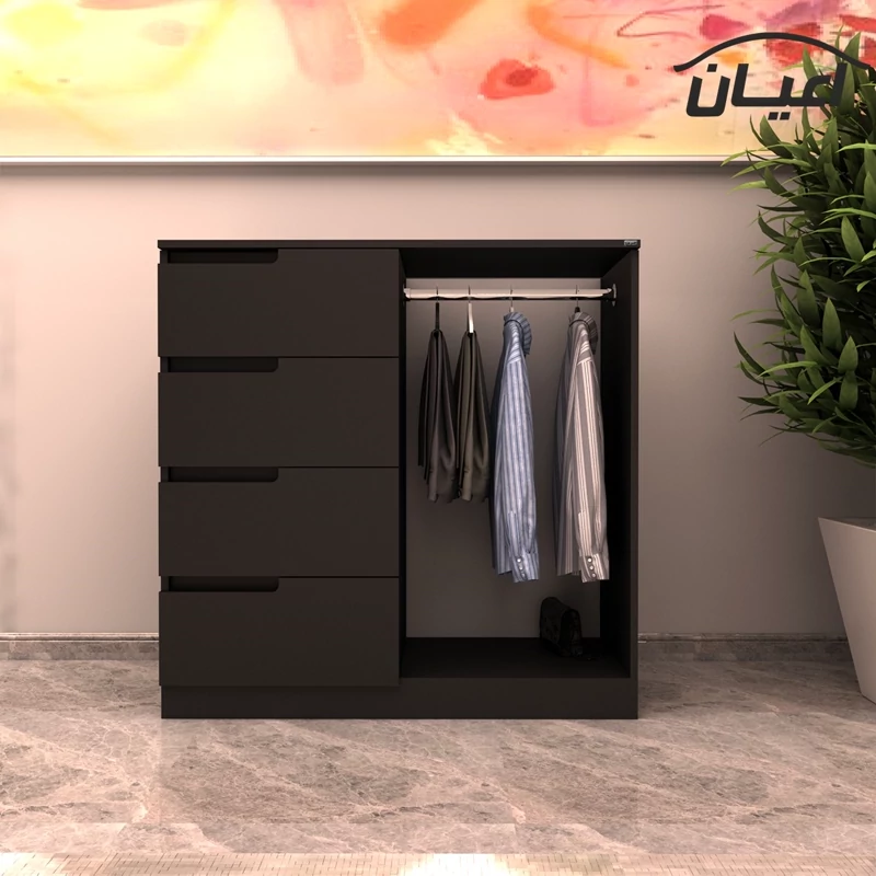 دراور چند منظوره اعیان - جنس نئوپان ملامینه شرکتی - سطح ضدخش - طراحی ساده و کاربردی - وزن متناسب با ابعاد.دارای چهار کشو بازشو - دارای فضای مجزا میله رگال .دستگیره به صورت سی ان سی - تحمل وزن متناسب با ابعاد و به صورت استاندارد - بسته بندی با لوگو و برند اعیان. هنگام خرید و دریافت کالا به بسته بندی و لوگوی برند اعیان دقت فرمایید. این کالا توسط برند اعیان در رنگ های سفید/مشکی/قهوه ای/قهوه ای روشن/قهوه ای تیره (ونگه)و چند رنگ تولید می شود.