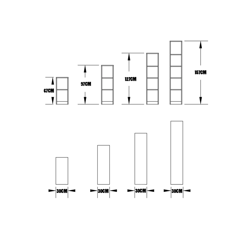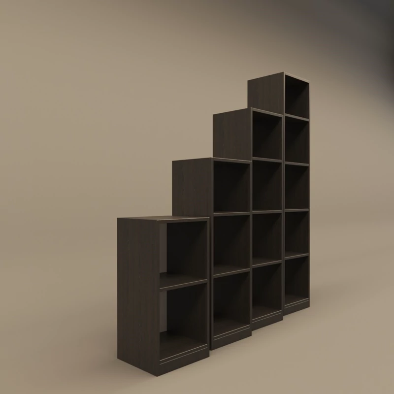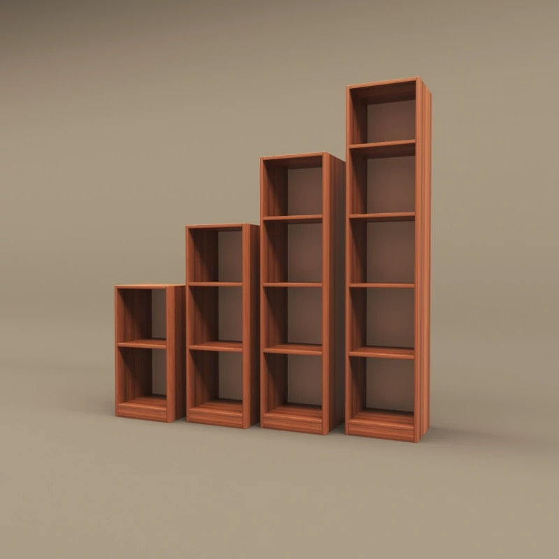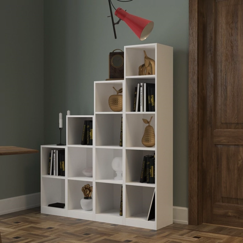 مجموعه ای شامل 4 کتابخانه 2 و 3 و 4 و 5 طبقه مجموعا دارای 14 قفسه فضای روی آن دارای بدنه و پاسنگ دارای تناسب مهندسی و مناسب نگهداری کتاب زونکن و انواع لوازم تزئینی قابلیت استفاده در منزل، اداره، هتل ها و اماکن عمومی، اتاق کودک، کنار میزهای تلویزیون، آشپزخانه، اتاق خواب، سالن پذیرایی و .. وزن مناسب در مقایسه با ابعاد جنس ملامینه اتصال الیت نوار لبه پی وی سی 157x30x30عدداول و127x30x30عدد دوم و97x30x30عدد سوم و 67x30x30 عدد چهارم