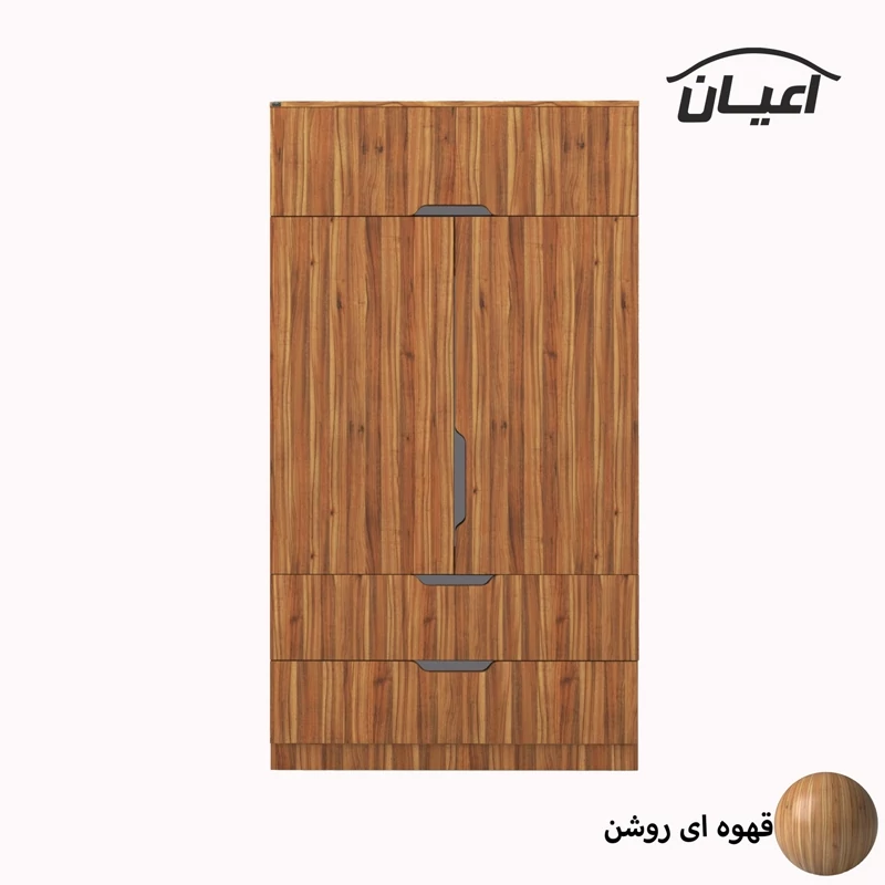 کمد لباس اعیان.جنس نئوپان ملامینه شرکتی.بسیار کاربردی و جادار.دارای دو درب کمدی دارای میله رگال.در قسمت بالای فضای میله رگال دارای درب داشبوردی.