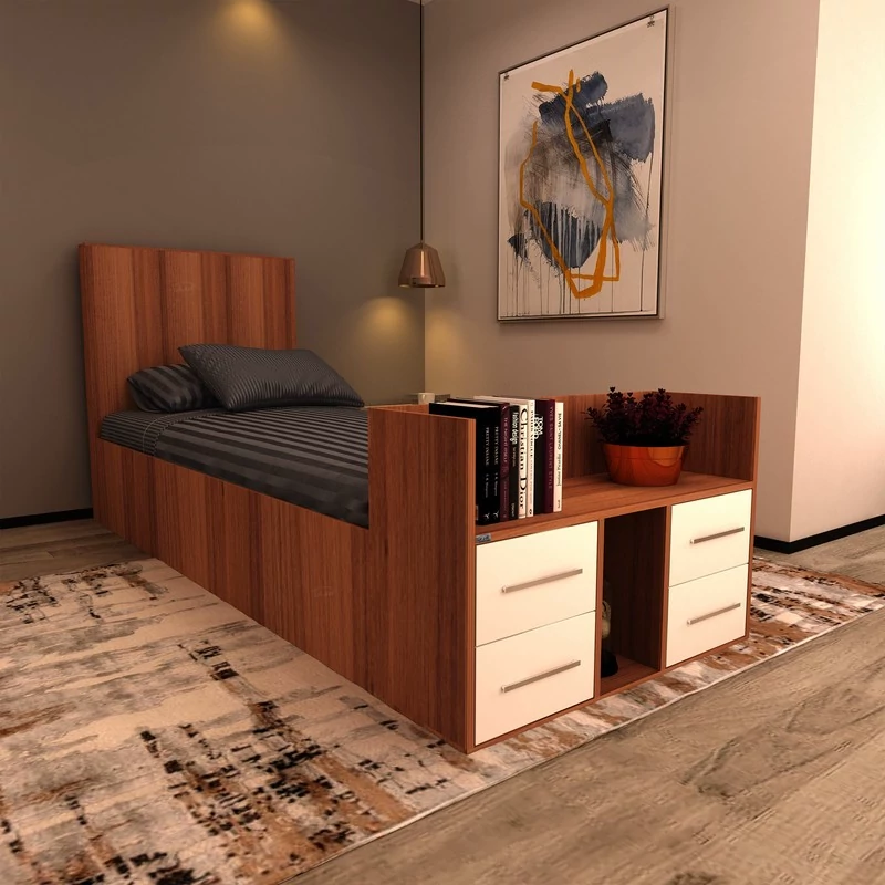 تخت یکنفره اعیان.سطح ضدخش.طراحی ساده و کاربردی.وزن متناسب با ابعاد.مناسب تشک 90x200سانت.تحمل وزن متناسب با ابعاد و به صورت استاندارد.دارای چهار کشو با ریل سه تکه.در رنگ های متنوع.بسته بندی با لوگو و برند اعیان.