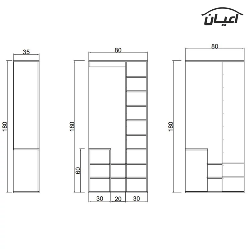 و دارای 2 کشو .و دارای 2فضای مجزا.دارای آینه میباشد.دارای فضای آویز لباس.