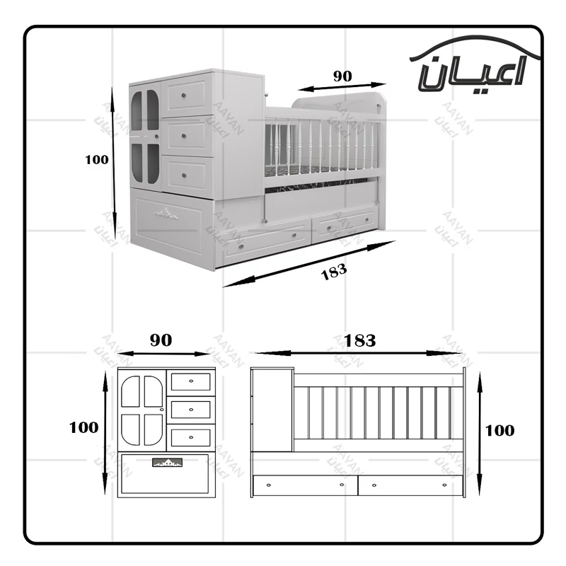تختخواب کودک و نوجوان اعیان مدل FH454 چندمنظوره(هزینه ارسال پس کرایه)