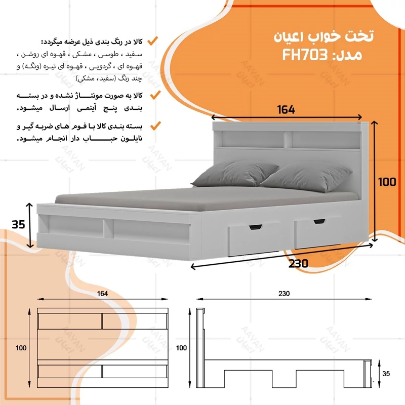 تخت خواب دونفره اعیان مدل FH703 سایز 160x200 سانتی متر ( ارسال با باربری - هزینه ارسال پس کرایه)