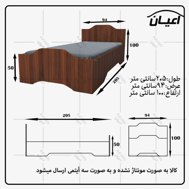 تخت خواب یکنفره اعیان مدل FH597 سایز 90x200 سانتی متر(هزینه ارسال پس کرایه)
