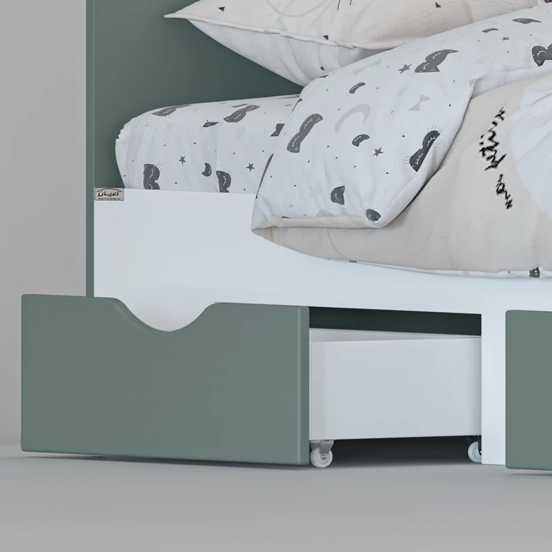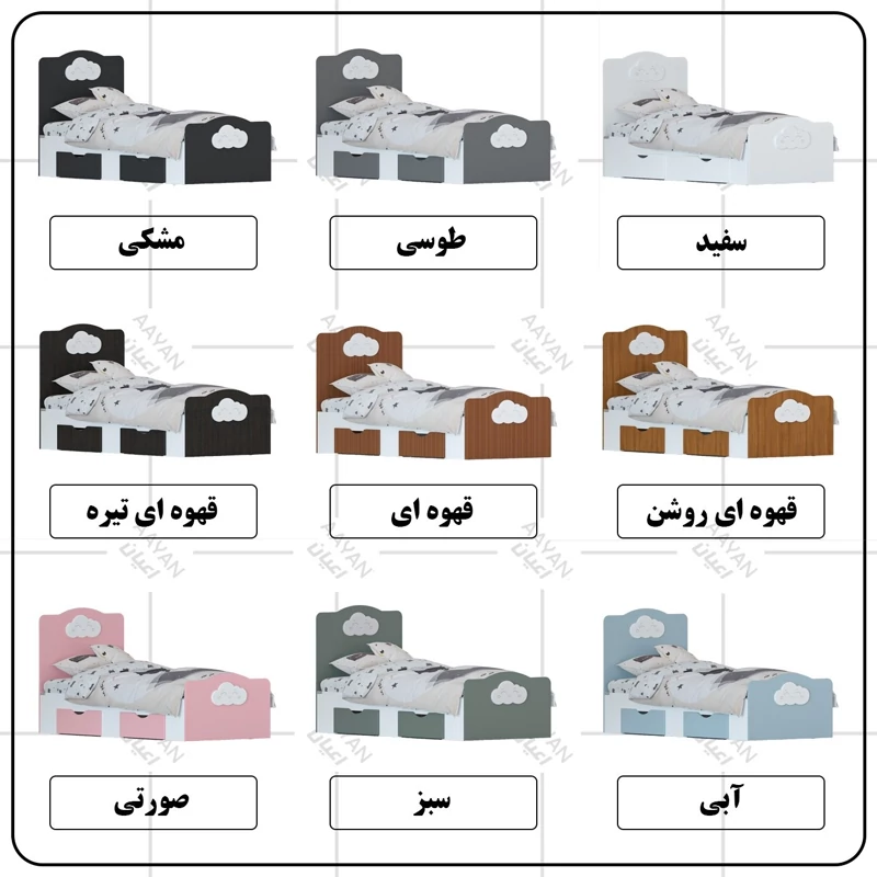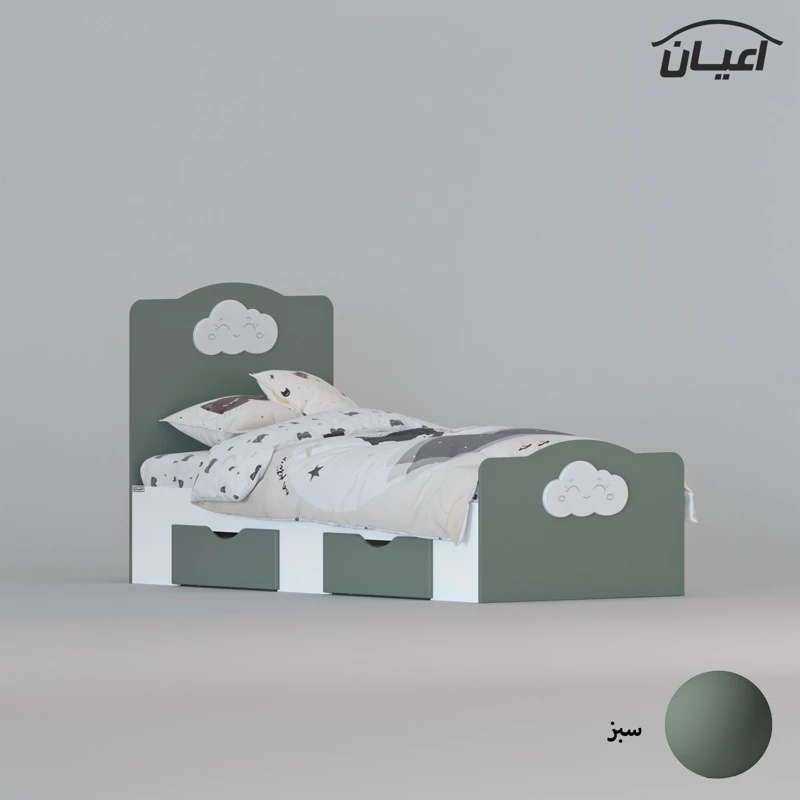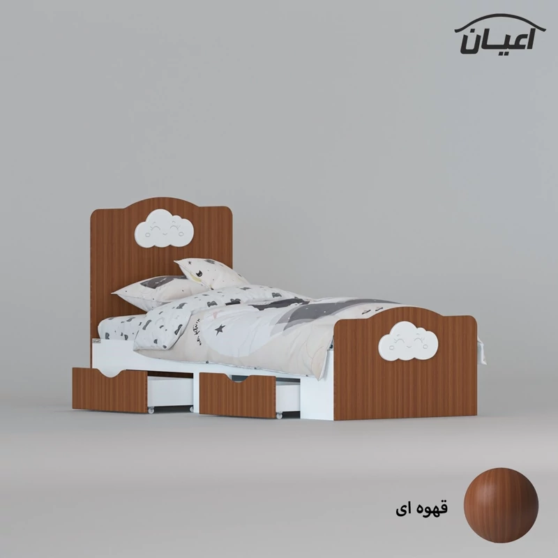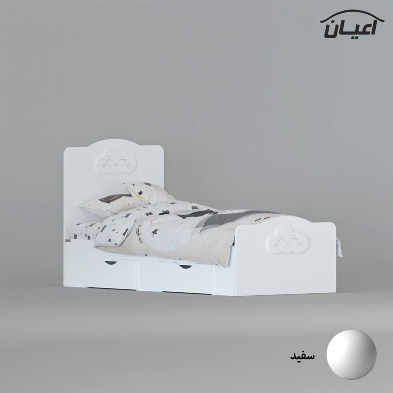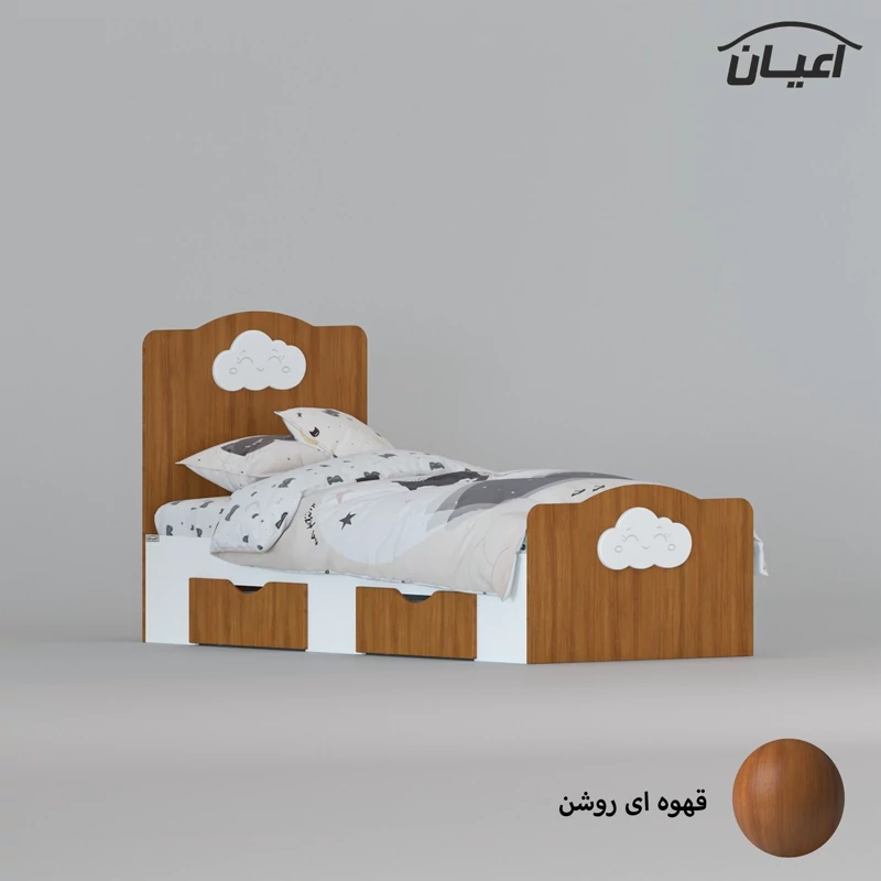 تخت خواب کودک و نوجوان اعیان طرح ابر ، جنس : مغزی ام دی اف با روکش وکیوم ، جنس بغل تخت ها : مغزی نئوپان با روکش ملامینه ،دارای دو کشو با بازشوی چرخ چمدانی(ساکی) ، ارسال به صورت مونتاژ نشده است و دارای کفی دوتکه نئوپان می باشد که همراه با چند جفت پایه ارسال می گردد.