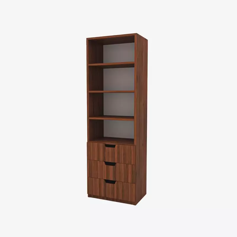 کتابخانه اعیان.جنس ملامینه.سطح ضدخش.طراحی ساده و کاربردی.وزن متناسب با ابعاد.قابل استفاده در منزل و محل کار.تحمل وزن متناسب با ابعاد و به صورت استاندارد.دارای سه کشو ، سه طبقه و چهار فضا ،در رنگ های متنوع.بسته بندی با لوگو و برند اعیان میباشد.