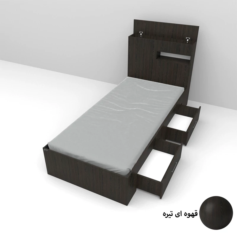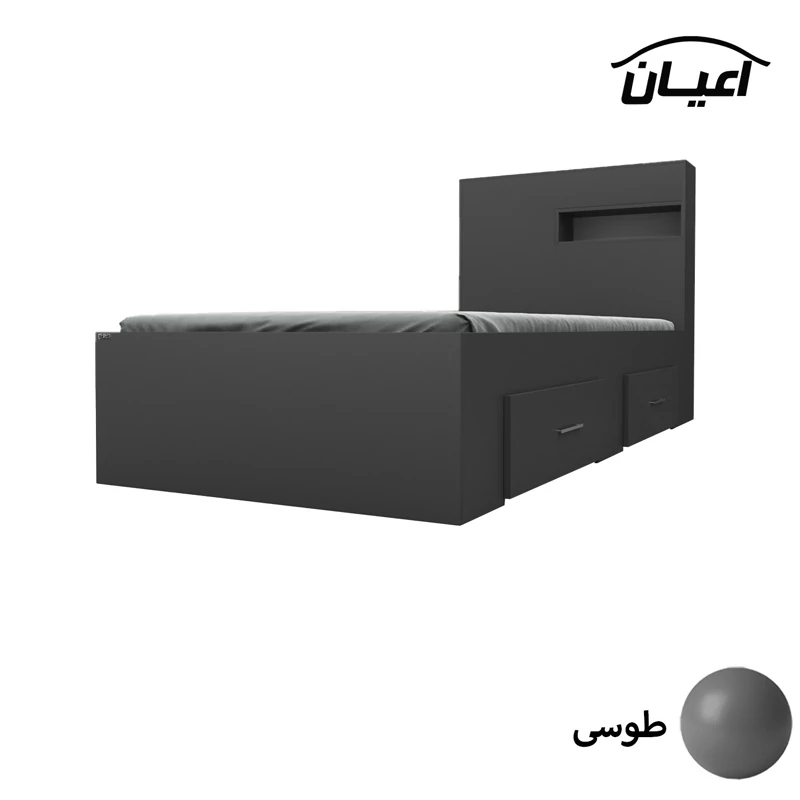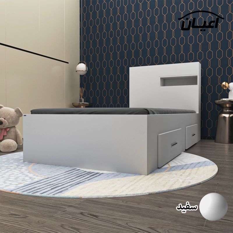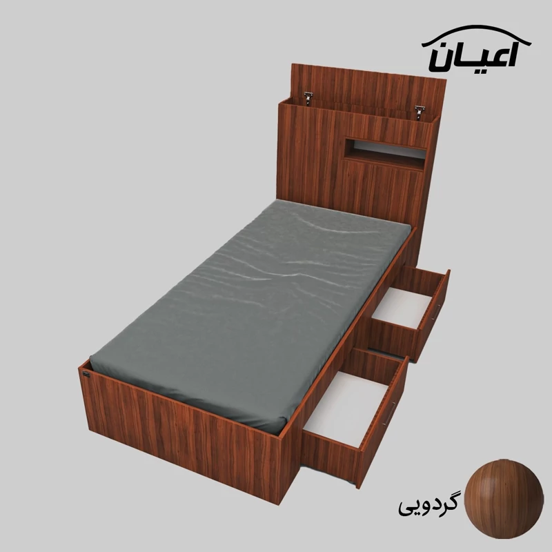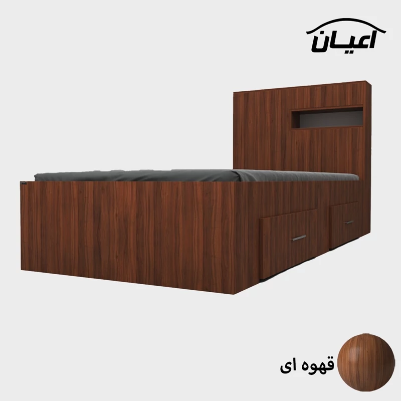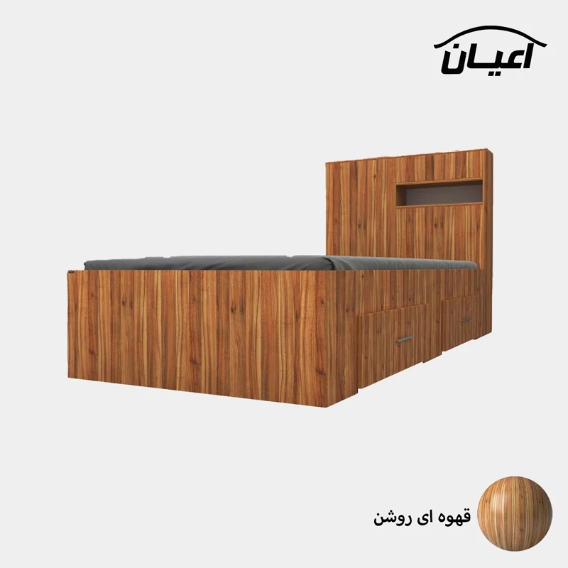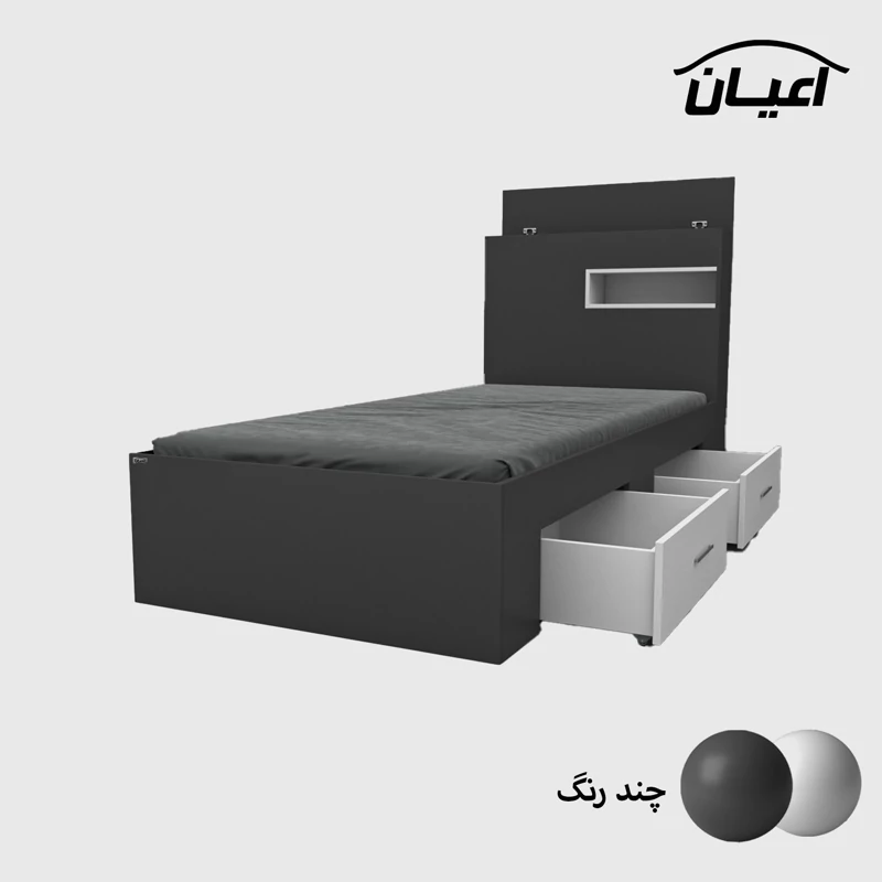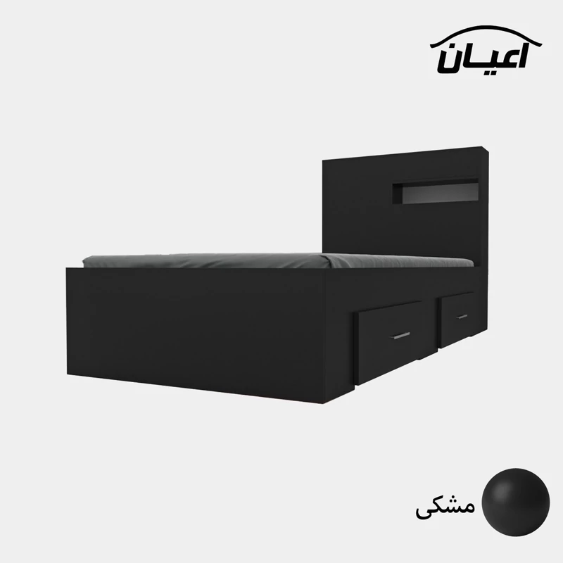 تخت خواب یک نفره اعیان.جنس نئوپان ملامینه شرکتی. کلگی یک باکس در نما و از جهت بالای کلکی دارای درب باز شو می باشد. کالا فاقد تشک می باشد. سایز تشک مناسب 90x200سانت است کالا به صورت مونتاژ نشده (جدا از هم) ارسال می شود - دارای دو عدد کشوی چرخدار که قابل جابجایی است- بسته بندی کالا به صورت چهار آیتمی است - جنس کفی تخت نئوپان به صورت دو تکه است - رنگ بندی کالا در آلبوم قابل مشاهده است(در رنگ های سفید/مشکی/قهوه ای/قهوه ای روشن/قهوه ای تیره (ونگه)/گردویی/طوسی و چند رنگ(سفید و طوسی) تولید می شود)-تنها در صورتی کالای انتخابی مطابق با تصاویر و مشخصات درج شده خواهد بود که هنگام انتخاب، فروشنده رسمی برند اعیان درباسلام درغرفه اعیان مشخص شده است را انتخاب نمایید. هنگام خرید و دریافت کالا به بسته بندی و لوگوی برند اعیان دقت فرمایید.
