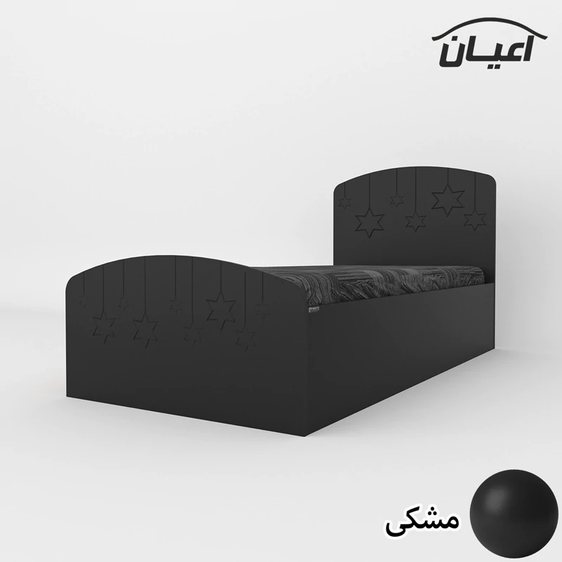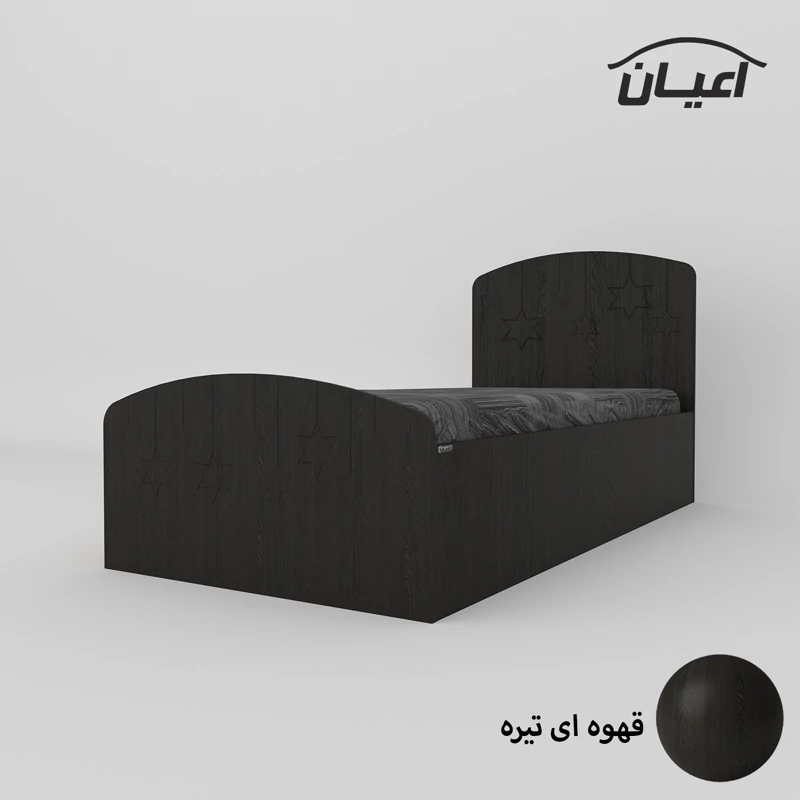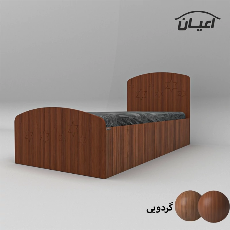 تخت خواب یک نفره اعیان طرح ستاره -جنس کلگی ها مغزی ام دی اف با روکش وکیوم-جنس بغل تخت ها نئوپان ملامینه شرکتی-کلگی ها طرح ستاره به صورت حکاکی سی ان سی شده است