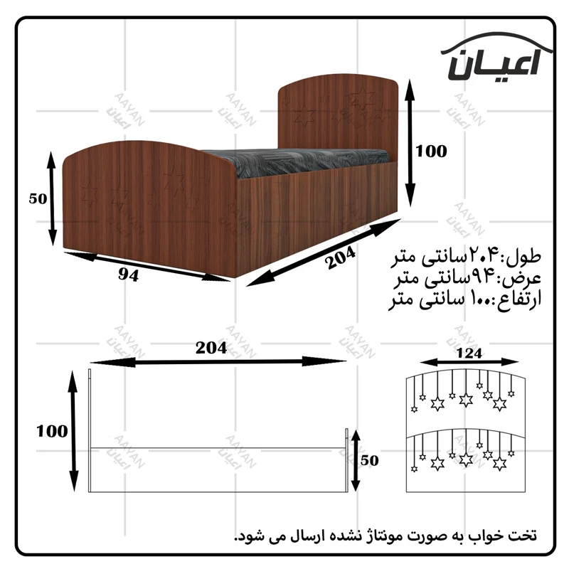 تخت خواب یکنفره اعیان مدل FH595 طرح ستاره سایز 90x200 سانتی متر(ارسال با باربری.هزینه ارسال پس کرایه)