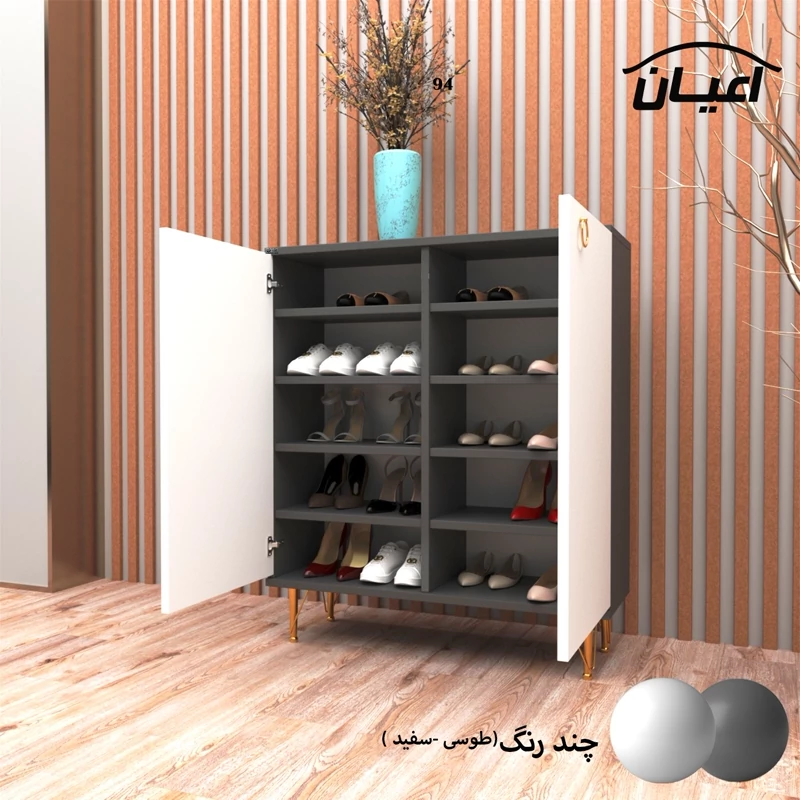 جنس نئوپان ملامینه.دارای دو درب کمدی درب ها به صورت آرامبند.