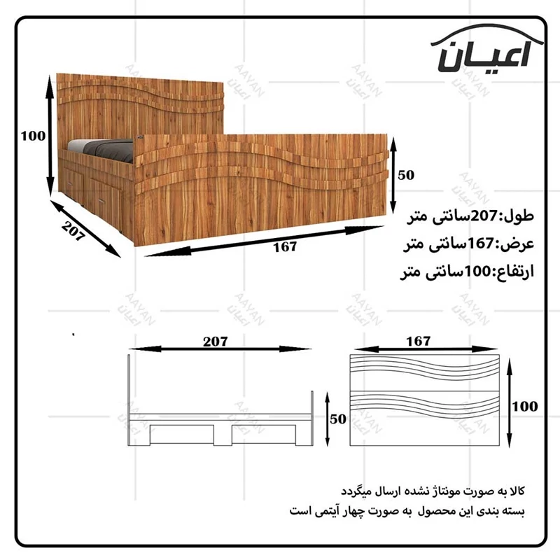 کالا فاقد تشک می باشد - سایز تشک مناسب 160x200سانت است-کالا به صورت مونتاژ نشده(جدا از هم) ارسال می شود