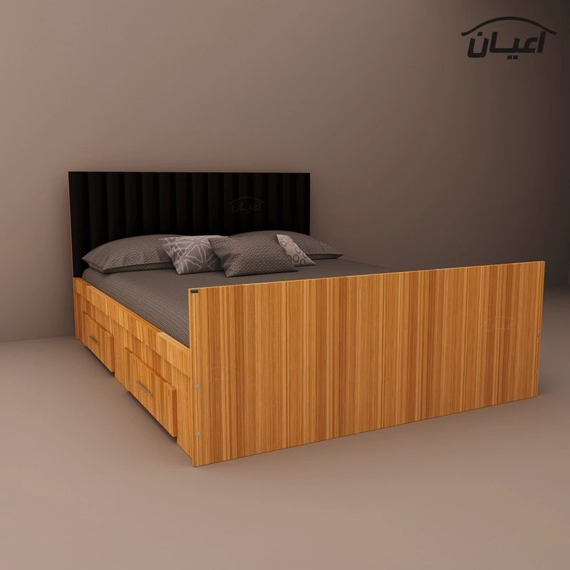 تخت خواب دونفره اعیان-طراحی ساده و کاربردی-تحمل وزن متناسب با ابعاد و استانداردها می باشد-در رنگ های متنوع که در آلبوم کالا قابل مشاهده است-دارای دو کشو .قسمت کلگی بالای کالا دارای لمسه کوبی میباشد. بسته بندی با لوگو و برند اعیان-تنها در صورتی کالای انتخابی مطابق با تصاویر و مشخصات درج شده خواهد بود که هنگام انتخاب فروشنده، فروشنده رسمی برند اعیان یعنی اعیان دکورا که با تیک آبی مشخص شده است را انتخاب نمایید.
