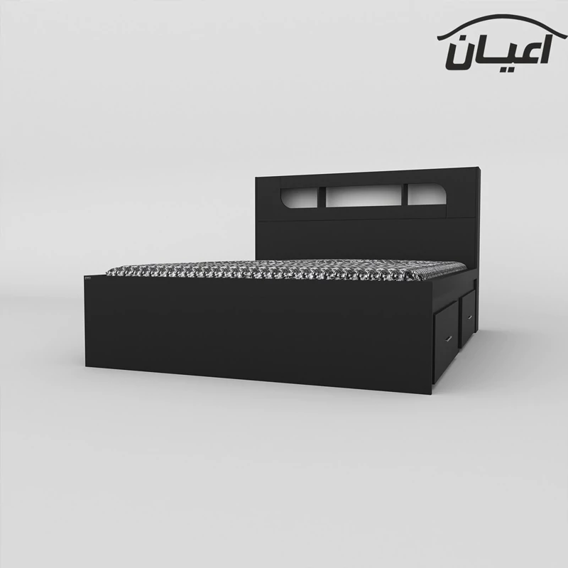 تخت خواب دونفره اعیان-جنس نئوپان ملامینه شرکتی.کلگی بالا دارای باکس می باشد-دارای دو کشو(به صورت چرخدار) است - کالا فاقد تشک می باشد. سایز تشک مناسب 160x200سانت است.کالا به صورت مونتاژ نشده(جدا از هم) ارسال می شود - بسته بندی کالا به صورت چهار آیتمی است - جنس کفی تخت نئوپان خام به صورت سه تکه است-رنگ بندی کالا در آلبوم قابل مشاهده است(در رنگ های سفید/مشکی/قهوه ای/قهوه ای روشن/قهوه ای تیره (ونگه) و چند رنگ تولید می شود)- هنگام خرید و دریافت کالا به بسته بندی و لوگوی برند اعیان دقت فرمایید.