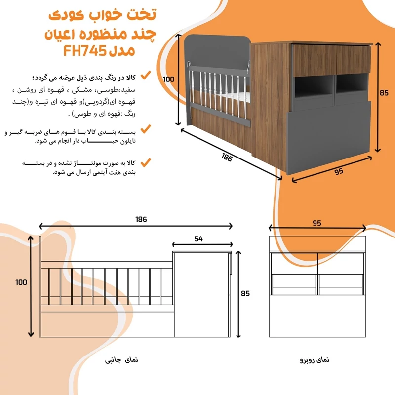 تختخواب چندمنظوره کودک و نوجوان اعیان مدل FH745 ( ارسال با باربری - هزینه ارسال پس کرایه)