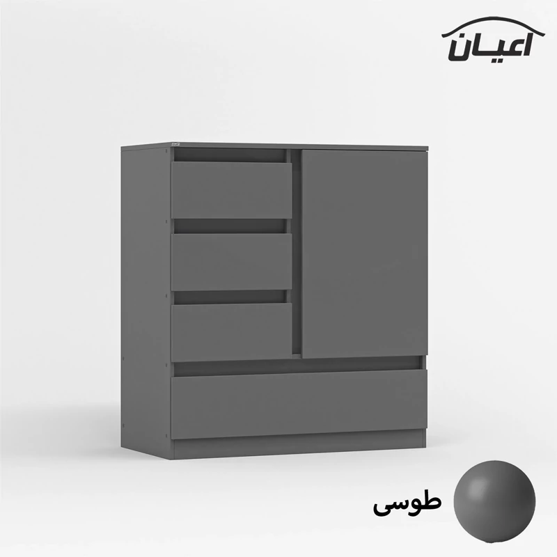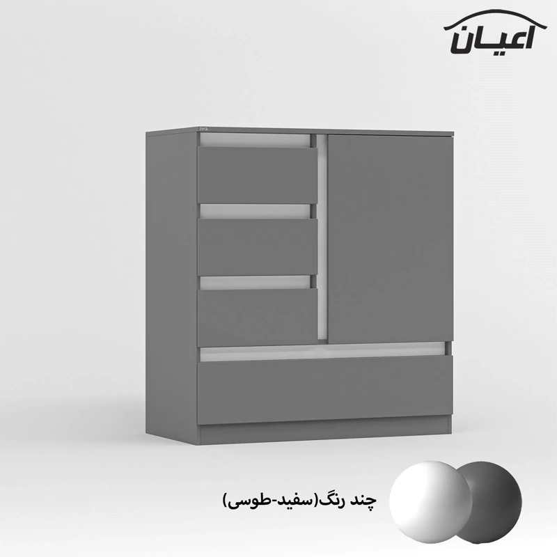دراور چند منظوره اعیان-جنس نئوپان ملامینه شرکتی-سطح ضدخش-طراحی ساده و کاربردی -دارای چهار کشو بازشو و یک درب کمدی دارای فضای مجزا میله رگال-دستگیره به صورت مخفی-بسته بندی با لوگو و برند اعیان-کالا به صورت مونتاژ شده و به صورت تک آیتمی ارسال می شود-رنگبندی کالا:سفید/مشکی/قهوه ای(گردویی)/قهوه ای روشن/قهوه ای تیره/طوسی/چند رنگ(طوسی-سفید)-رنگ بندی کالا در آلبوم قابل مشاهده است.