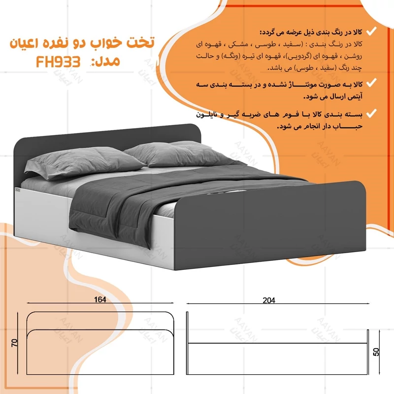 تخت خواب ملامینه دو نفره اعیان مدل FH933 سایز 160x200 سانتی متر (پس کرایه)