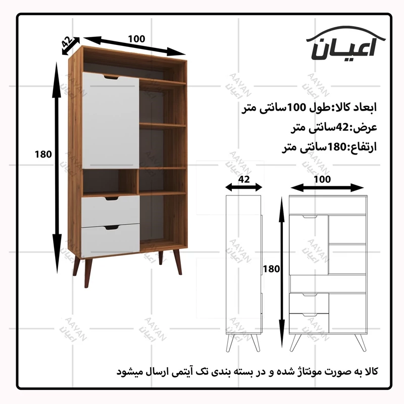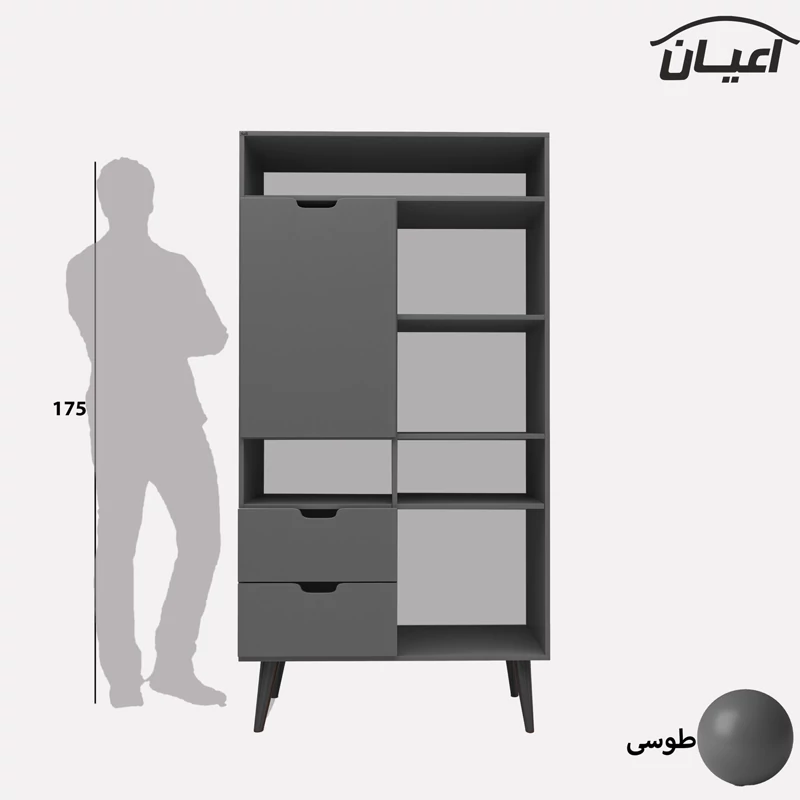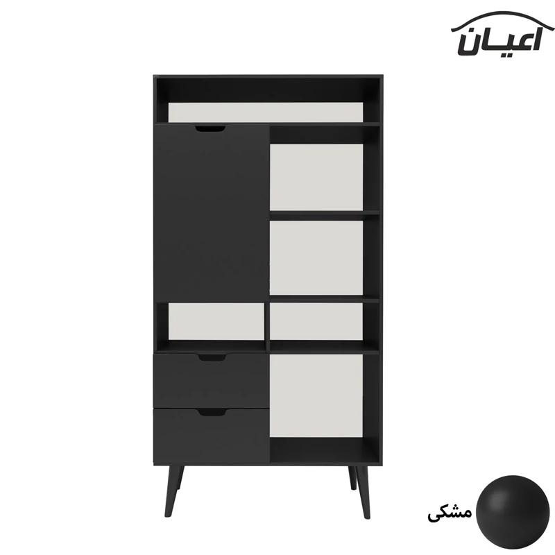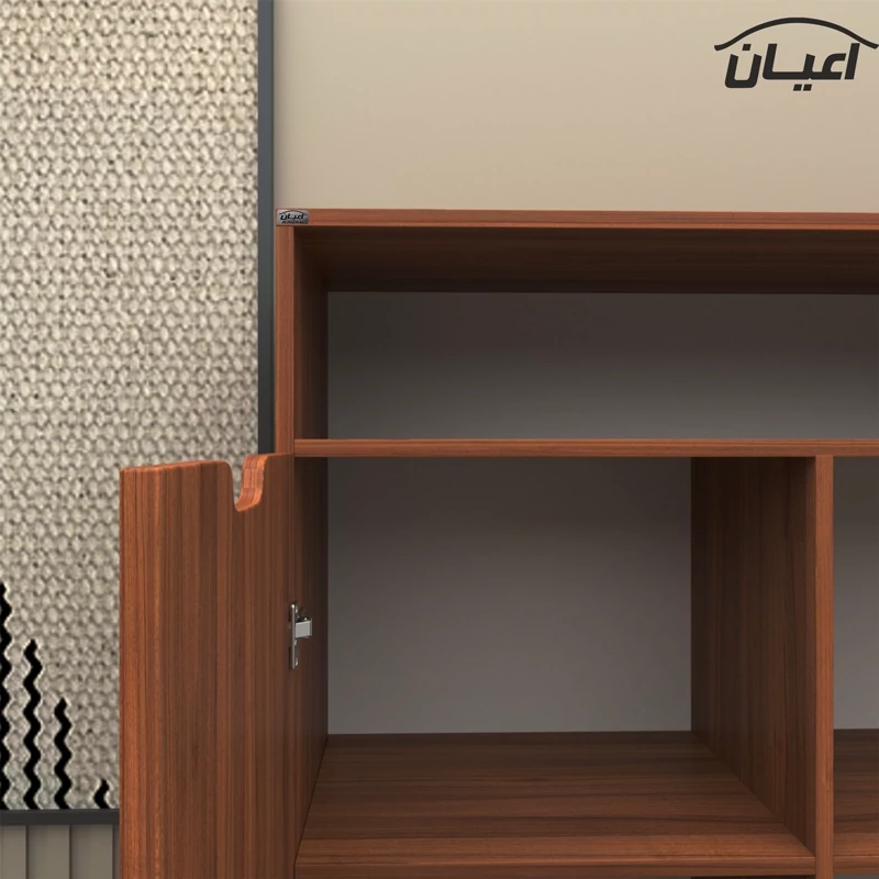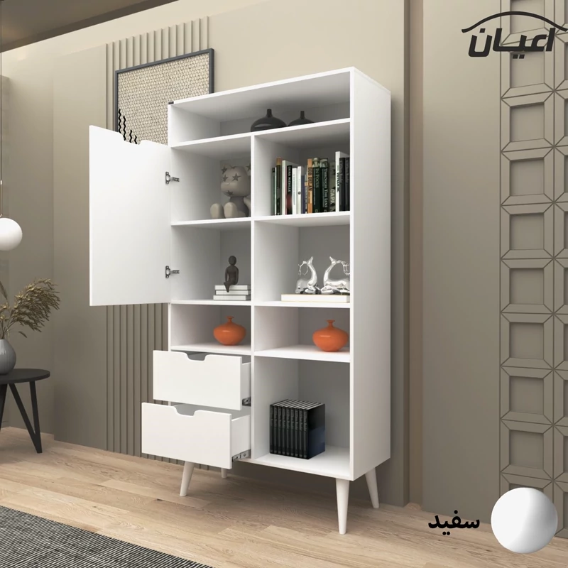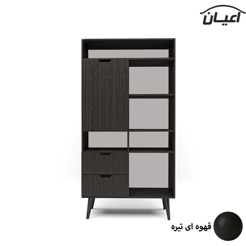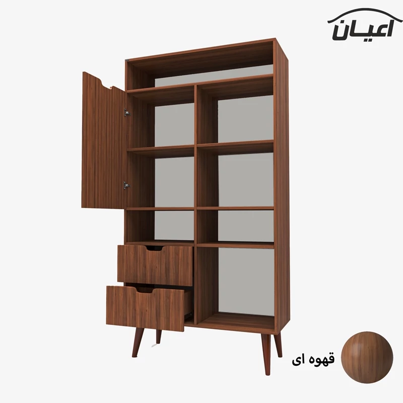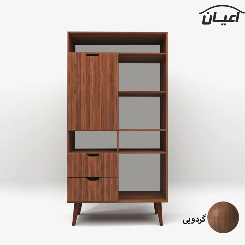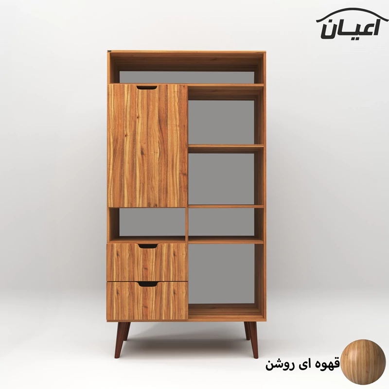 کتابخانه اعیان-جنس مغزی نئوپان با روکش ملامینه شرکتی-طراحی مدرن و کاربردی-دارای دو کشو با ریل سه تکه و دارای یک درب کمدی به صورت آرام بند