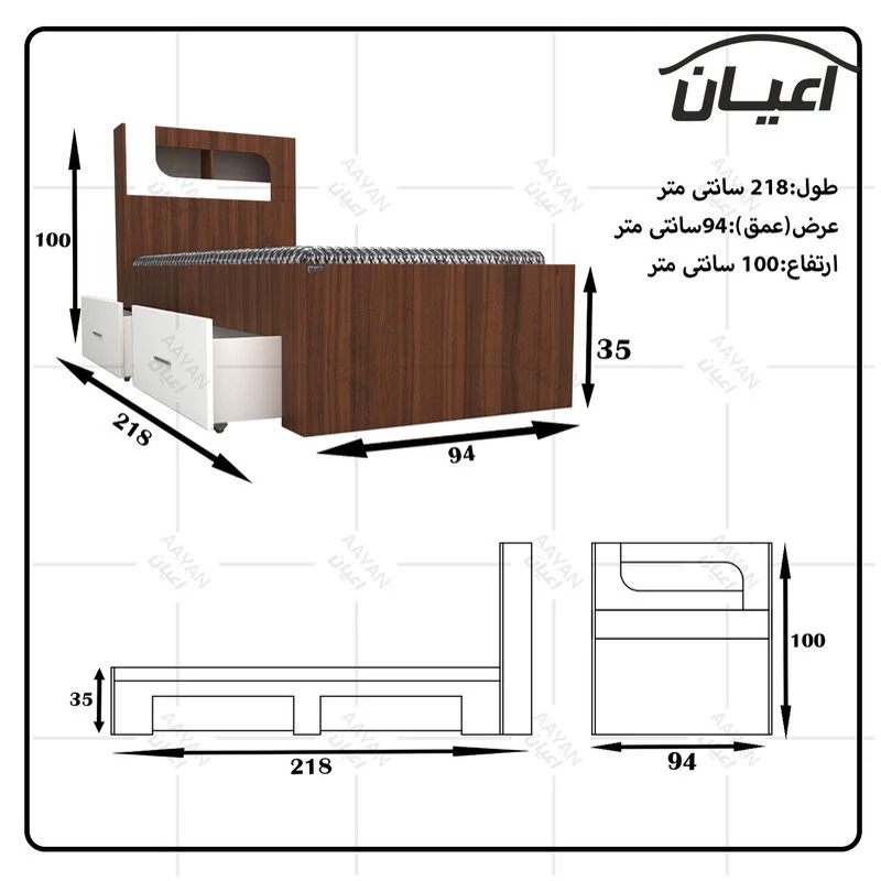تخت خواب یکنفره اعیان مدل FH524 سایز 90x200 سانتی متر(هزینه ارسال پس کرایه)