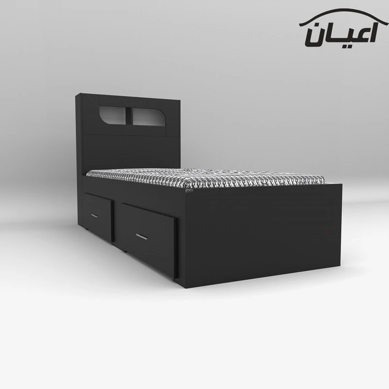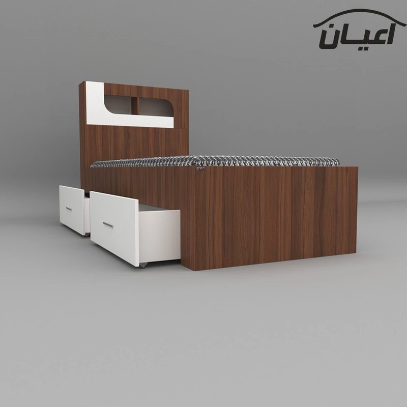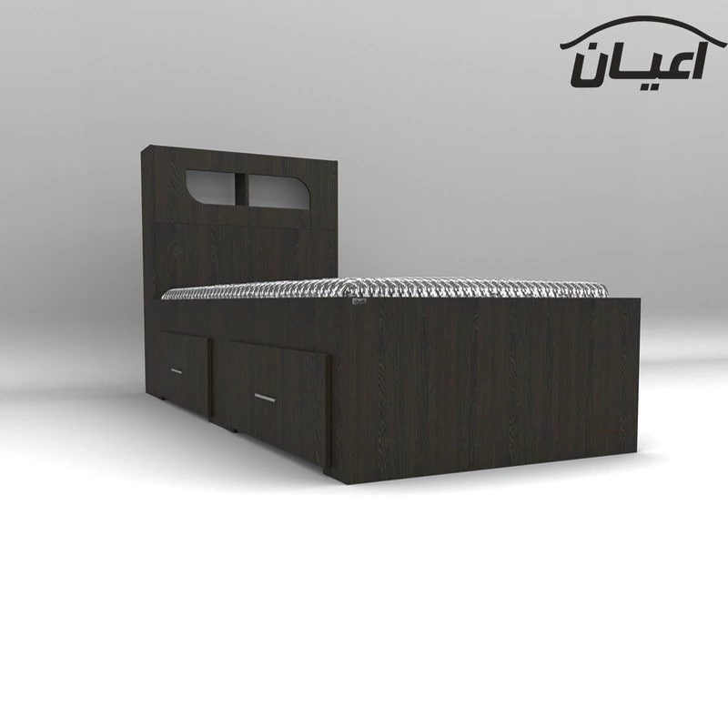 تخت خواب یک نفره اعیان-جنس نئوپان ملامینه شرکتی-کلگی بالا دارای باکس می باشد-دارای دو کشو(به صورت چرخدار) است - کالا فاقد تشک می باشد-سایز تشک مناسب 90x200سانت است-کالا به صورت مونتاژ نشده(جدا از هم) ارسال می شود - بسته بندی کالا به صورت چهار آیتمی است - جنس کفی تخت نئوپان خام به صورت دو تکه است-رنگ بندی کالا در آلبوم قابل مشاهده است(در رنگ های سفید/مشکی/قهوه ای/قهوه ای روشن/قهوه ای تیره (ونگه) و چند رنگ تولید می شود)-هنگام خرید و دریافت کالا به بسته بندی و لوگوی برند اعیان دقت فرمایید.