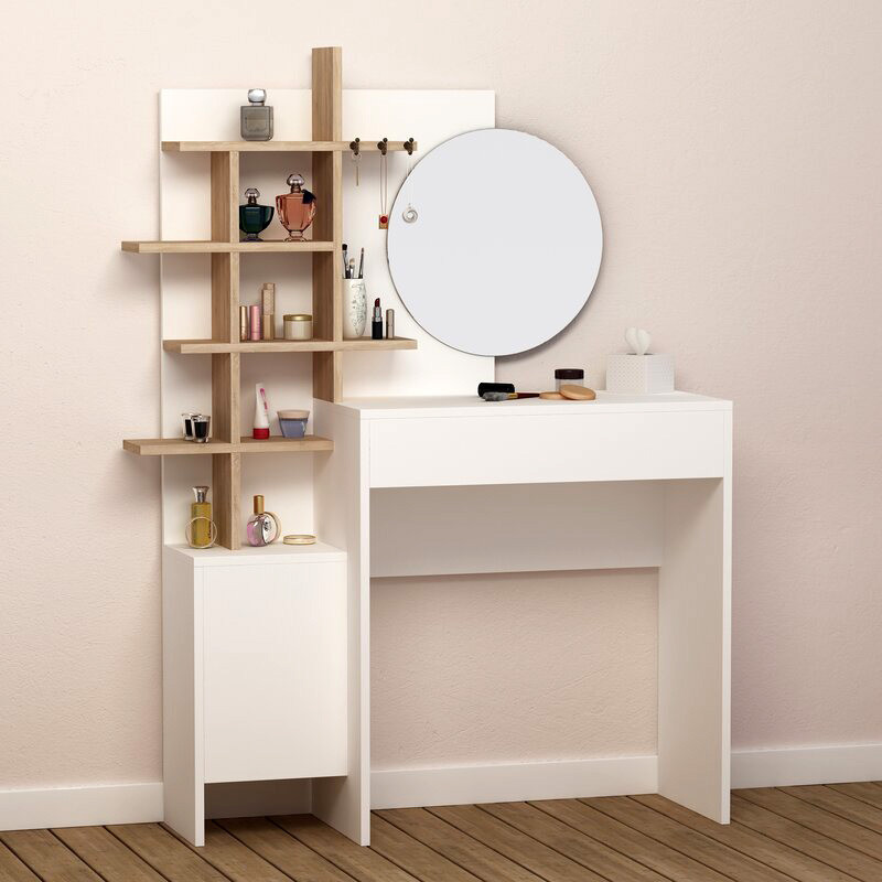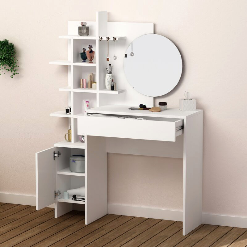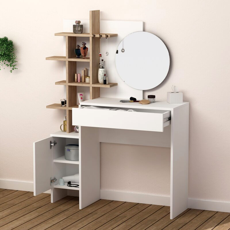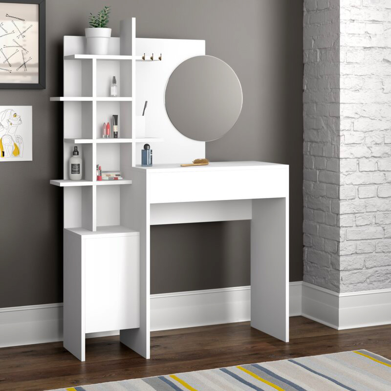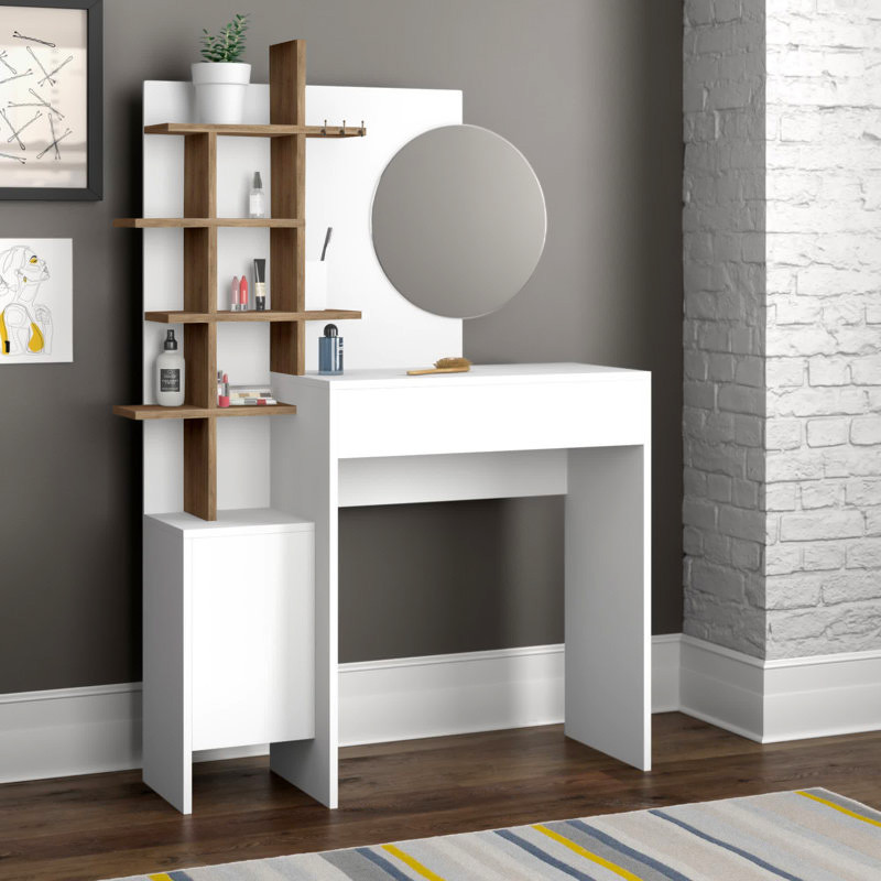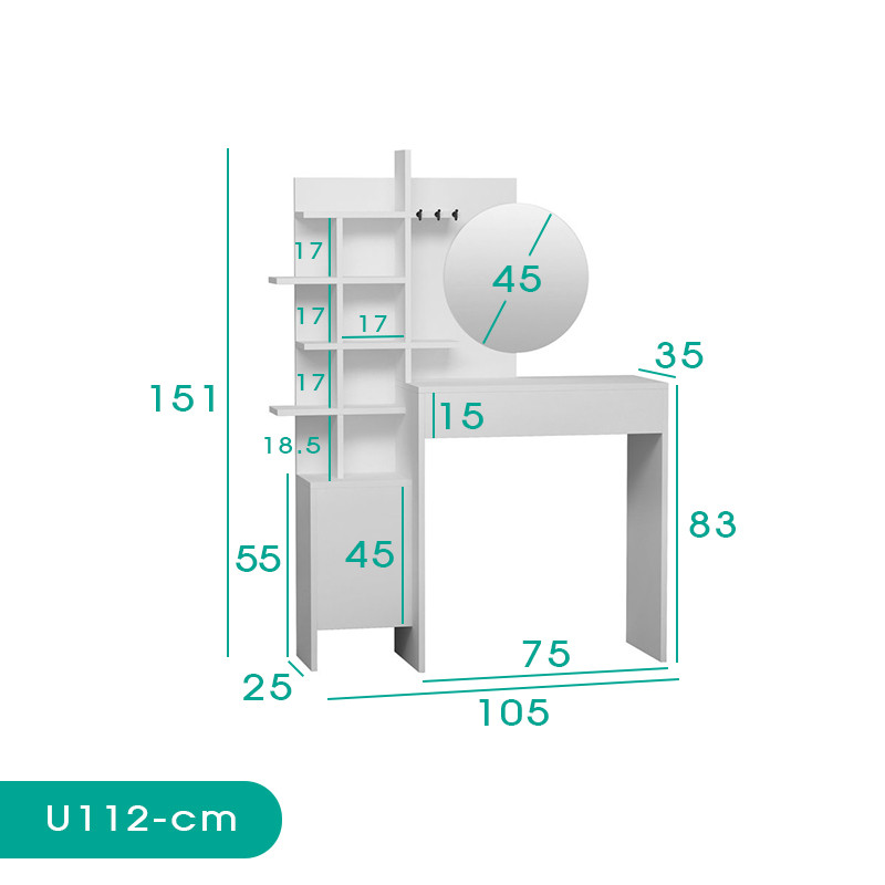 سایر توضیحات: میز آرایش اسمردیس مدل U112 با ظاهری ساده و زیبا، مناسب دکوراسیون منزل یا اداری با طراحی مدرن است. میز آرایش اسمردیس مدل U112 دارای آینه، کشو، کمد و چندین قفسه می باشد.