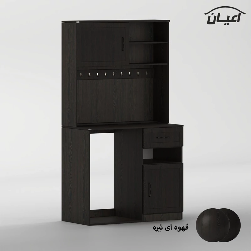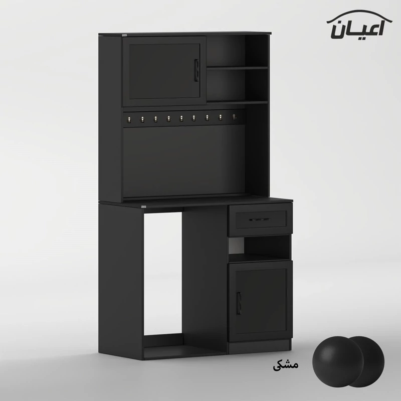کنسول کافه بار اعیان ، جنس بدنه مغزی نئوپان با روکش ملامینه ، جنس درب ها مغزی ام دی اف با روکش وکیوم ، کالا به صورت مونتاژ شده (فیکس نشده) و در بسته بندی دو آیتمی ارسال می شود ، آیتم اول (قسمت پایین کار) : دارای یک میز کار ، یک کشو با بازشوی ریل سه تکه ساچمه ای ، یک کمدچه با بازشوی لولای آرام بند ، یک طبقه و یک فضای کوچک و همچنین فضایی برای یخچال به ابعاد 55×60×92 سانتی متر می باشد (لطفا هنگام خرید کالا به ابعاد یخچال خود دقت کنید و از هر سمت حداقل 1 الی 2 سانتی متر تلورانس را در نظر بگیرید ( به عنوان مثال طول فضای یخچال 60 سانتی متر می باشد شما میتوانید برای یخچال هایی تا طول 58 سانتی متر استفاده فرمایید و همین طور به عرض و ارتفاع نیز دقت نمایید و کمی بادخور جهت جانمایی بهتر لحاظ گردد) ، آیتم دوم (قسمت بالای کار) : دارای ده عدد آویز لیوان ، یک طبقه و دو فضا و همچنین یک کمدچه با بازشوی لولای آرام بند ، دستگیره های کالا به رنگ مشکی و به صورت دو پیچ می باشد ، دستگیره های محصول برای حفظ سلامت کالا و بسته بندی از داخل بسته می شود لطفا پس از بازکردن کار با استفاده از پیچ گوشتی جهت آن را تغییر دهید. این کالا در رنگ بندی (سفید ، طوسی ، مشکی ، قهوه ای روشن ، قهوه ای (گردویی) ، قهوه ای تیره (ونگه) و حالت چند رنگ (کرمی ، قهوه ای) تولید و عرضه می گردد. این کالا را فقط با لوگو و برند اعیان تهیه کنید. لطفا توجه داشته باشید که همواره چند درجه اختلاف رنگ بین تصاویر بارگذاری شده و کالای ساخته شده وجود دارد.