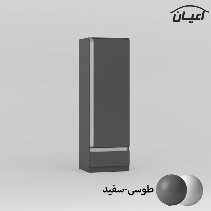 کمد لباس اعیان-جنس مغزی نئوپان با روکش ملامینه شرکتی-سطح ضدخش-طراحی ساده و کاربردی -دارای یک کشو بازشو و یک درب کمدی دارای فضای میله رگال و یک طبقه-دستگیره به صورت مخفی-درب به صورت آرامبند-بسته بندی با لوگو و برند اعیان-کالا به صورت مونتاژ شده و به صورت تک آیتمی ارسال می شود-رنگ بندی کالا:سفید/مشکی/قهوه ای(گردویی)/قهوه ای روشن/قهوه ای تیره/طوسی/چند رنگ(طوسی-سفید)-رنگ بندی کالا در آلبوم قابل مشاهده است.