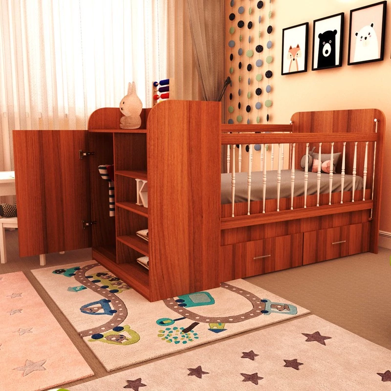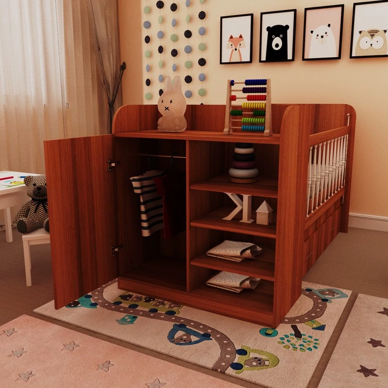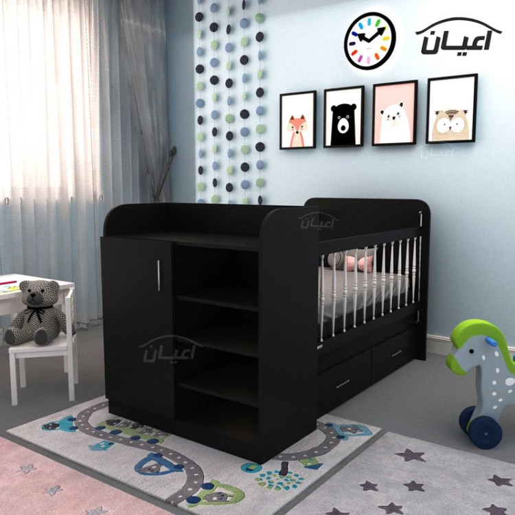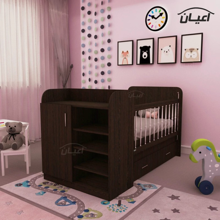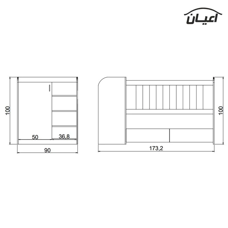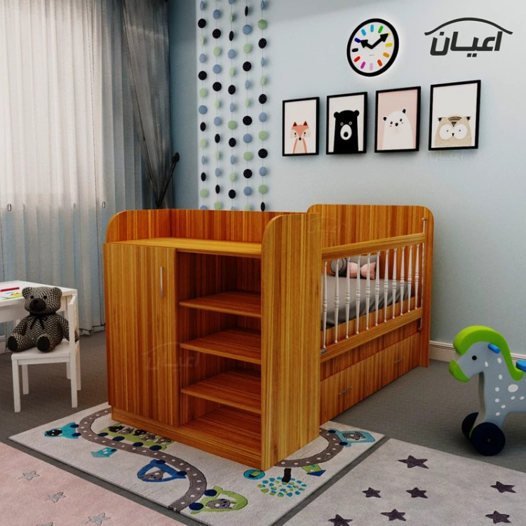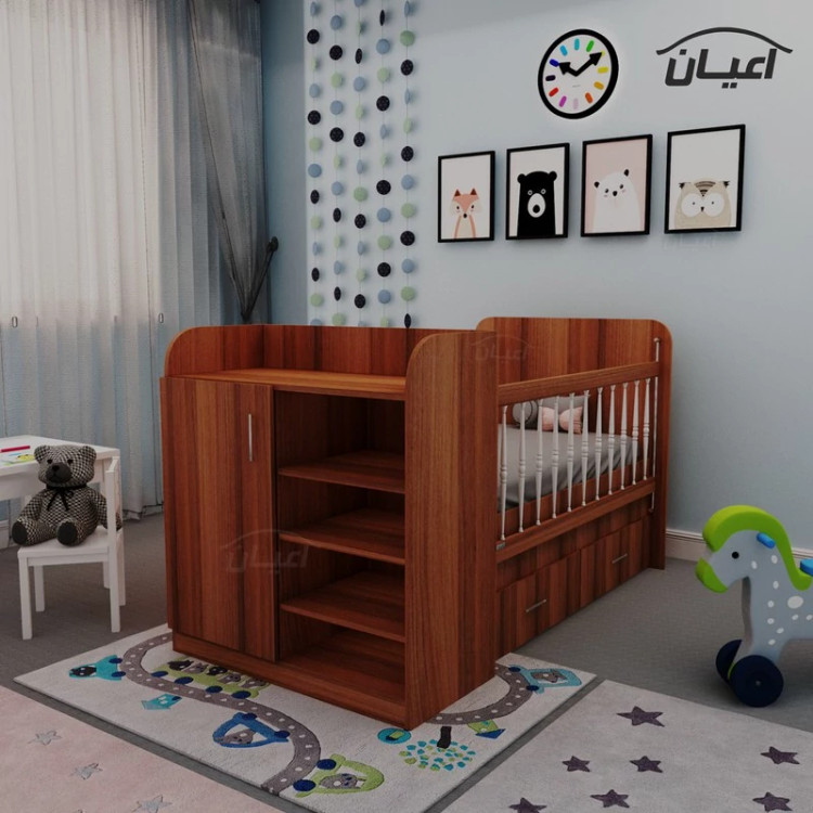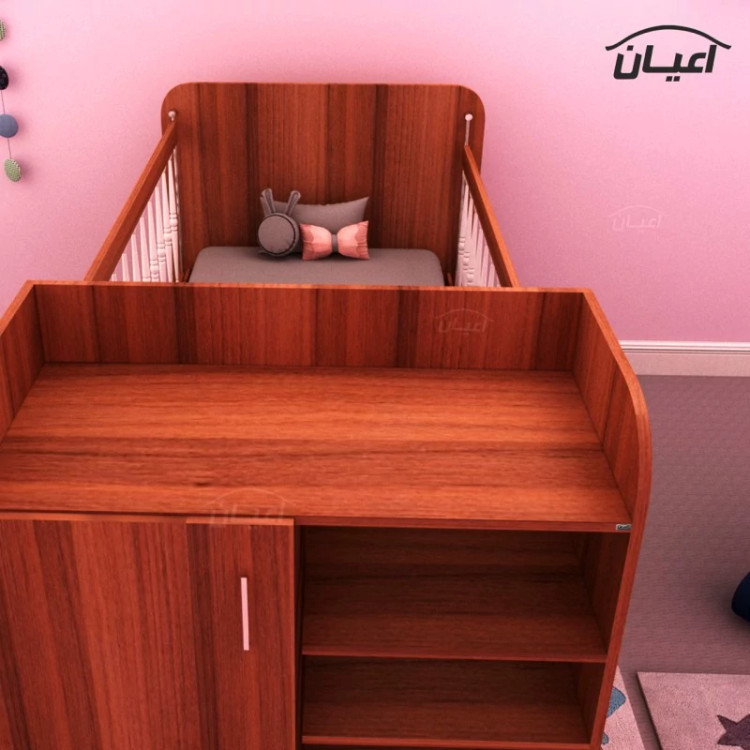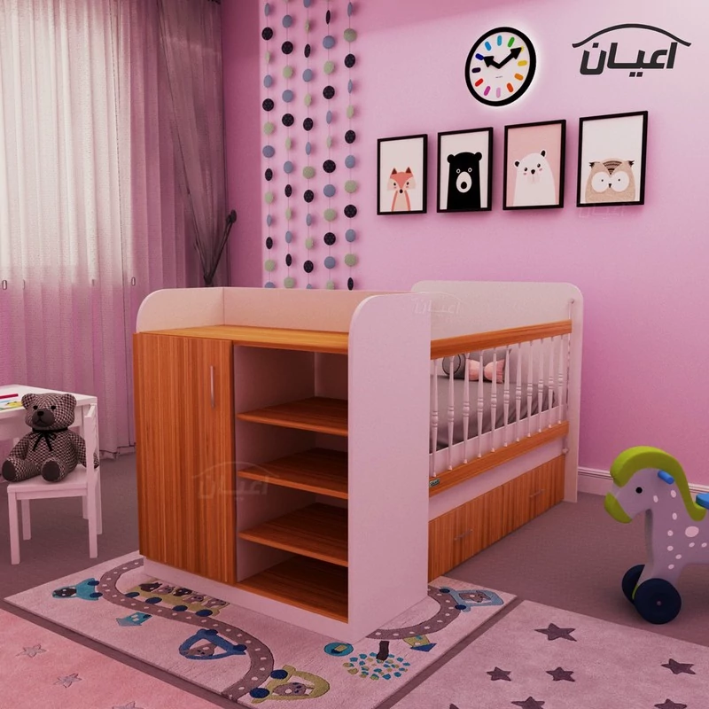 تخت کودک اعیان.جنس ملامینه .سطح ضدخش.طراحی ساده و کاربردی.وزن متناسب با ابعاد.مناسب تشک 70x130.تحمل وزن متناسب با ابعاد و به صورت استاندارد.دارای دو کشو چرخدار.دارای یک درب کمدی و دارای میله رگال لباس کودک.دارای سه طبقه و چهار فضای مجزا.