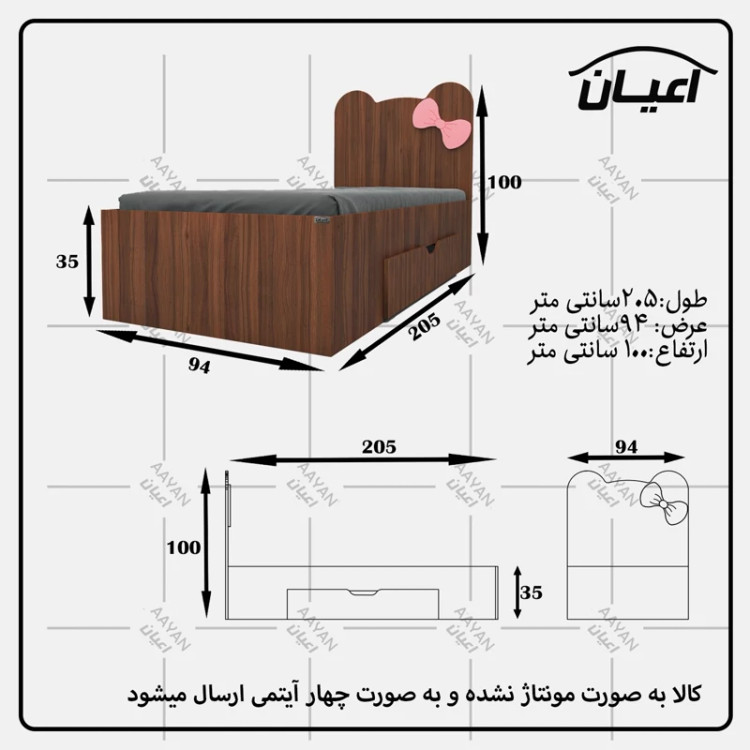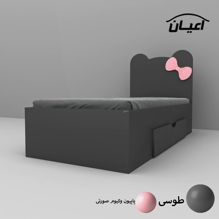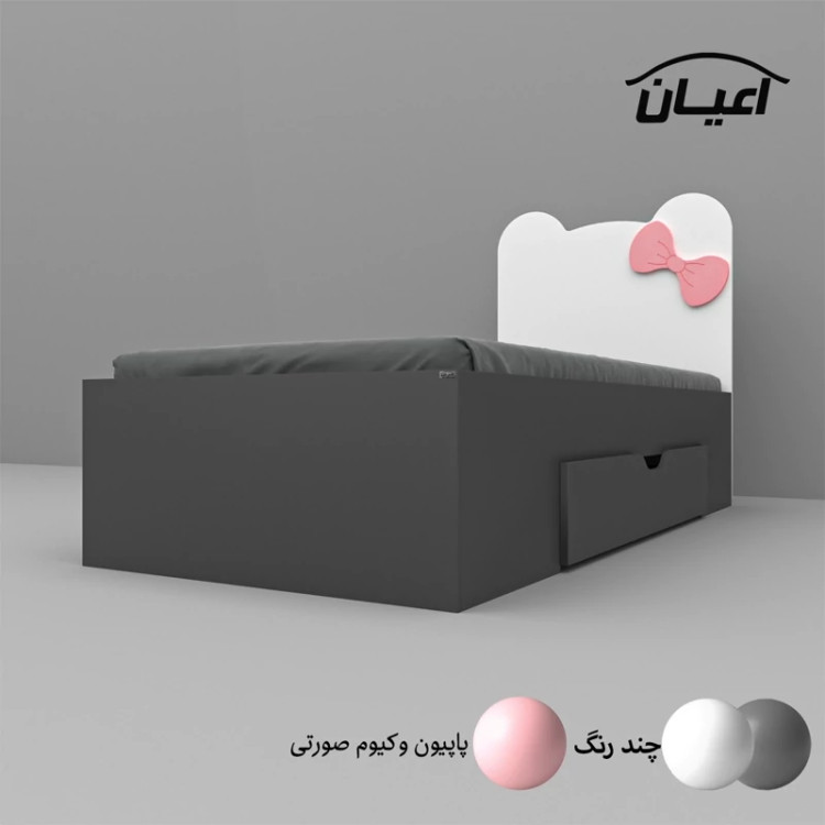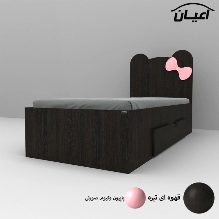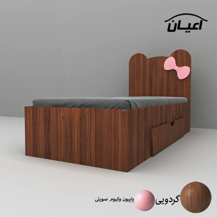 تخت خواب یکنفره اعیان طرح پاپیون -جنس مغزی نئوپان با روکش ملامینه شرکتی-پاپیون وکیوم