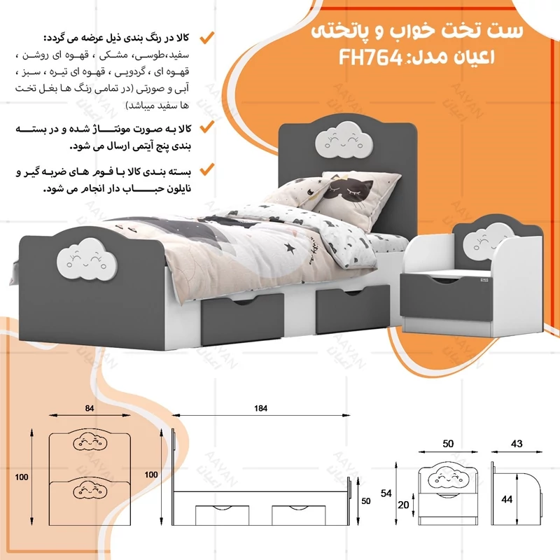 ست تخت خواب یک نفره اعیان مدل FH764 سایز 80x180 سانتی متر مجموعه دو عددی ( ارسال با باربری - هزینه ارسال پس کرایه)