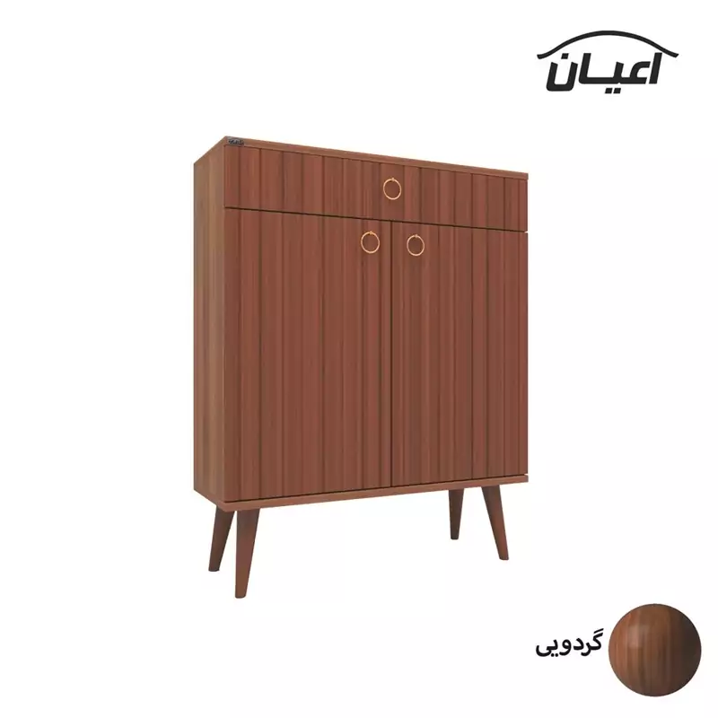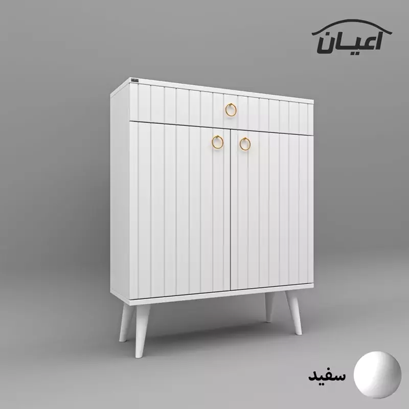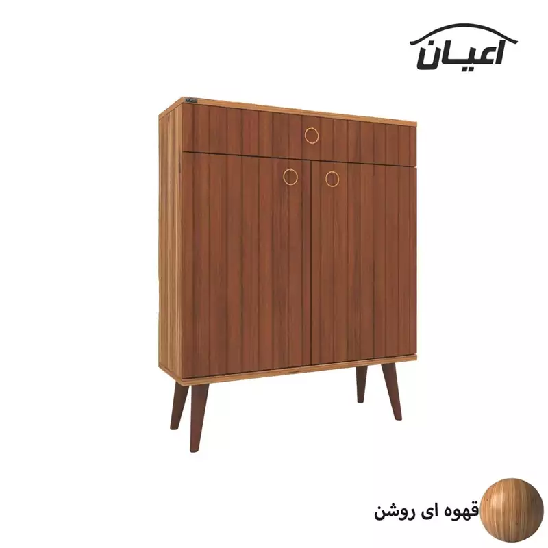 جاکفشی اعیان.جنس نئوپان ملامینه.دارای دو درب کمدی شامل سه طبقه و چهار فضا.طراحی مدرن.دارای یک کشو با ریل ساچمه ای-دستگیره گوشواره ای طلایی-ارسال در بسته بندی با برند و لوگو اعیان.تنها در صورتی کالای انتخابی مطابق با تصاویر و مشخصات درج شده خواهد بود که هنگام انتخاب فروشنده، فروشنده رسمی برند اعیان در باسلام را انتخاب نمایید.xهنگام خرید و دریافت کالا به بسته بندی و لوگوی برند اعیان دقت فرمایید. این کالا توسط برند اعیان در رنگ های سفید/مشکی/قهوه ای/گردویی/قهوه ای روشن/ قهوه ای تیره(ونگه)/طوسی و چندرنگ(طوسی و سفید) تولید می شود.