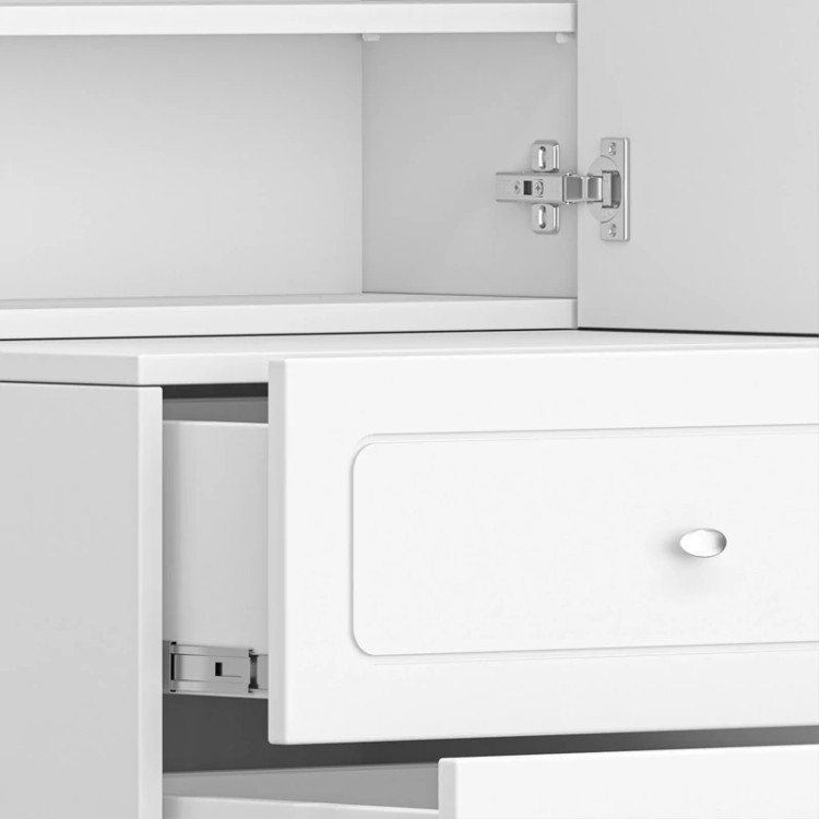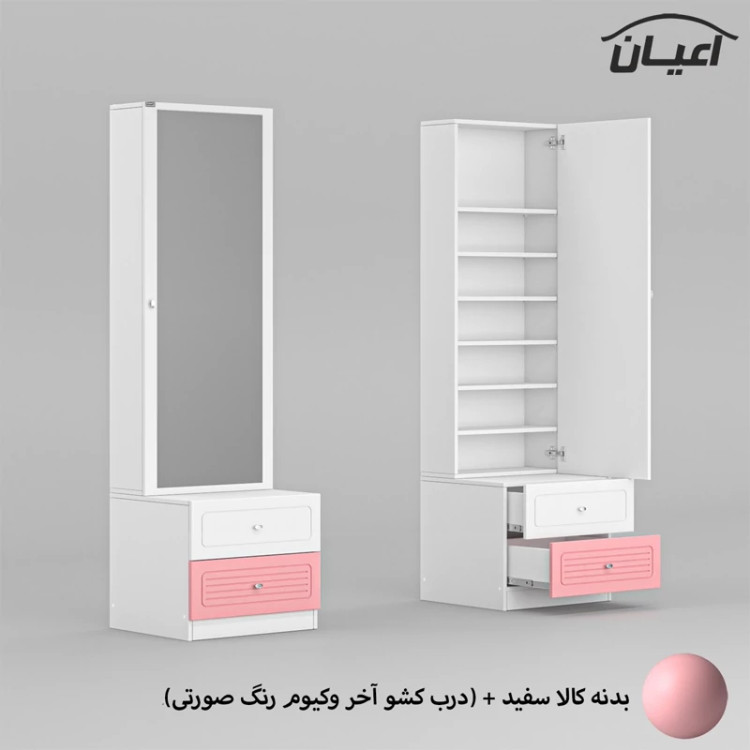 در نظر داشته باشید که مطابق تصاویر محصول بدنه ی این کالا کاملا به رنگ سفید بوده و تنها رنگ کشوی آخر کالا دارای رنگ بندی متغیر می باشد. لطفا توجه داشته باشید که همواره چند درجه اختلاف رنگ بین تصاویر بارگذاری شده و کالای اصلی (ساخته شده) وجود دارد.