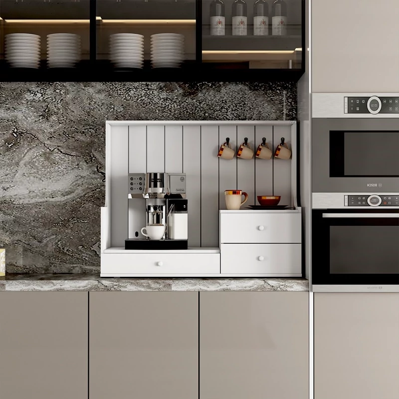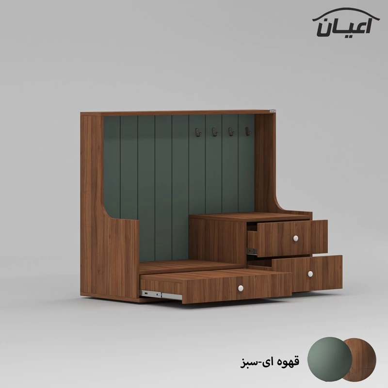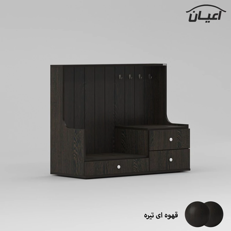 کنسول کافه بار اعیان ، جنس بدنه مغزی نئوپان با روکش ملامینه ، جنس نمای کار مغزی ام دی اف با روکش وکیوم و دارای طرح CNC، قسمت پایین کار دارای یک میز کار به حالت بازشوی کشویی و دو کشو با بازشوی ریل سه تکه ساچمه ای می باشد ، کالا دارای 4 عدد آویز لیوان می باشد ، دستگیره های کار به صورت توپی و به رنگ سفید می باشد،کالا دارای سیستم مدیریت کابل (جاکابلی) در نمای کار می باشد ، این کالا با رنگ بندی : ( سفید ، طوسی ، مشکی ، قهوه ای روشن ، قهوه ای (گردویی)، قهوه ای تیره (ونگه) و حالت چند رنگ (قهوه ای ، سبز) تولید و عرضه می گردد ، لطفا توجه داشته باشید که همواره چند درجه اختلاف رنگ بین تصاویر بارگذاری شده و کالای ساخته شده وجود دارد.