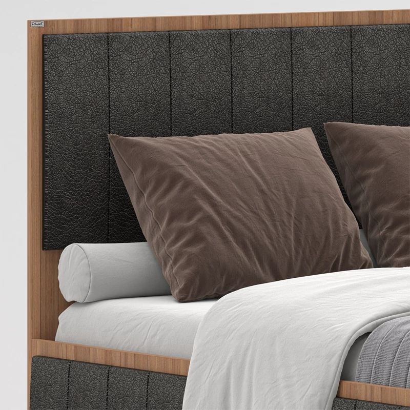 تخت خواب یک نفره اعیان ، جنس نئوپان با روکش ملامینه، طراحی ساده، شیک و ترکیب با لمسه چرم مصنوعی مشکی، ارسال به صورت مونتاژ نشده صورت می گیرد، کالا فاقد تشک می باشد، کفی به صورت دو تکه به همراه چند جفت پایه متحرک است، سایز تشک مناسب برای تخت خواب (200×120 سانتی متر) می باشد ، این کالا با رنگ بندی (سفید ، طوسی ، مشکی ، قهوه ای روشن ، قهوه ای (گردویی) ، قهوه ای تیره (ونگه) ) تولید و عرضه می شود ، این کالا را فقط با لوگو و برند اعیان تهیه کنید، لطفا توجه داشته باشید که همواره چند درجه اختلاف رنگ بین تصاویر بارگذاری شده و کالای ساخته شده وجود دارد.
