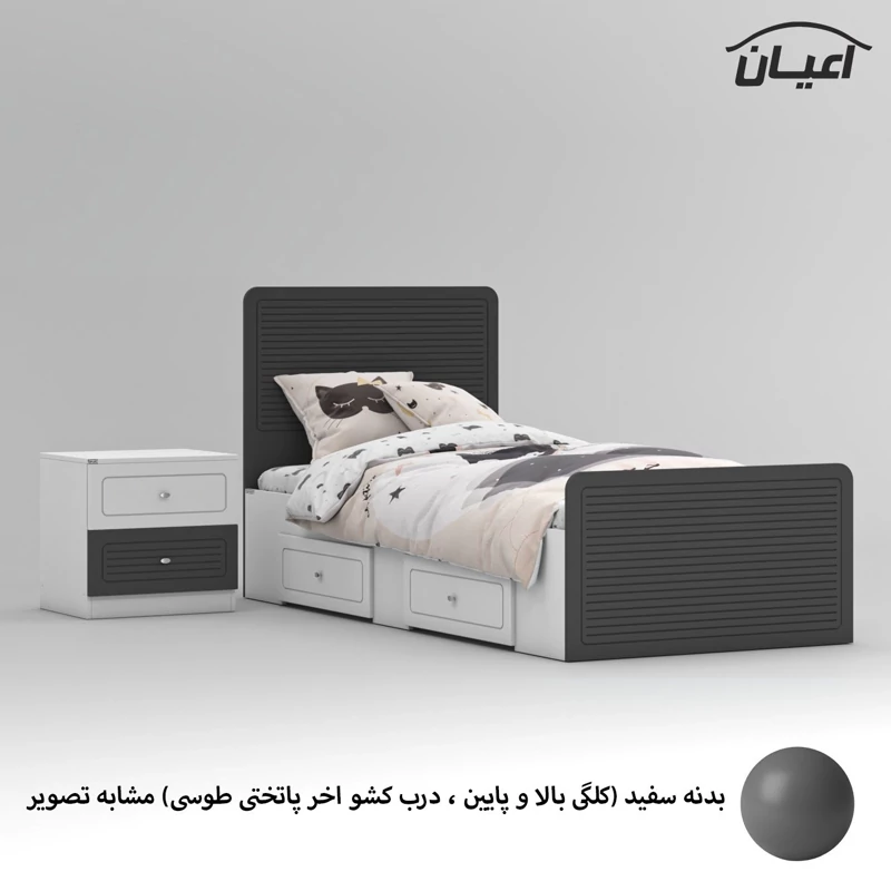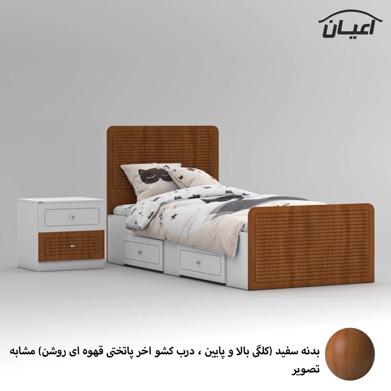تخت خواب ملامینه یک نفره اعیان مدل FH815 سایز 90x200 سانتی متر مجموعه دو عددی (پس کرایه)