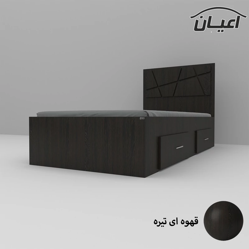 تخت خواب یک نفره اعیان. جنس نئوپان ملامینه شرکتی. کلگی دارای طراحی مدرن که به صورت قید دوبل می باشد.