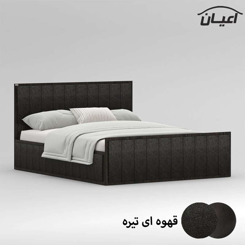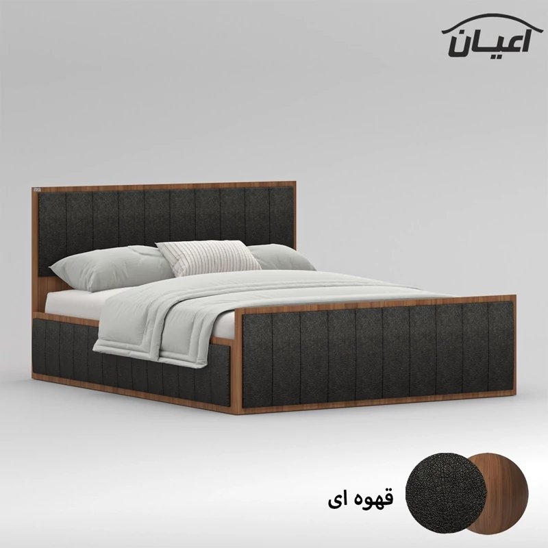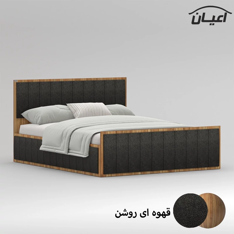 تخت خواب دو نفره اعیان ، جنس نئوپان با روکش ملامینه، طراحی ساده، شیک و ترکیب با لمسه چرم مصنوعی مشکی، کالا فاقد تشک می باشد، کفی به صورت سه تکه به همراه چند جفت پایه متحرک است، سایز تشک مناسب برای تخت خواب(200×160 سانتی متر) می باشد ، این کالا با رنگ بندی (سفید ، طوسی ، مشکی ، قهوه ای روشن ، قهوه ای (گردویی) ، قهوه ای تیره (ونگه) ) تولید و عرضه می شود، این کالا را فقط با لوگو و برند اعیان تهیه کنید، لطفا توجه داشته باشید که همواره چند درجه اختلاف رنگ بین تصاویر بارگذاری شده و کالای ساخته شده وجود دارد.