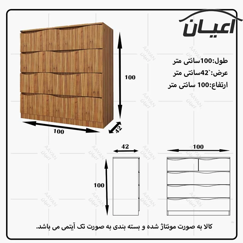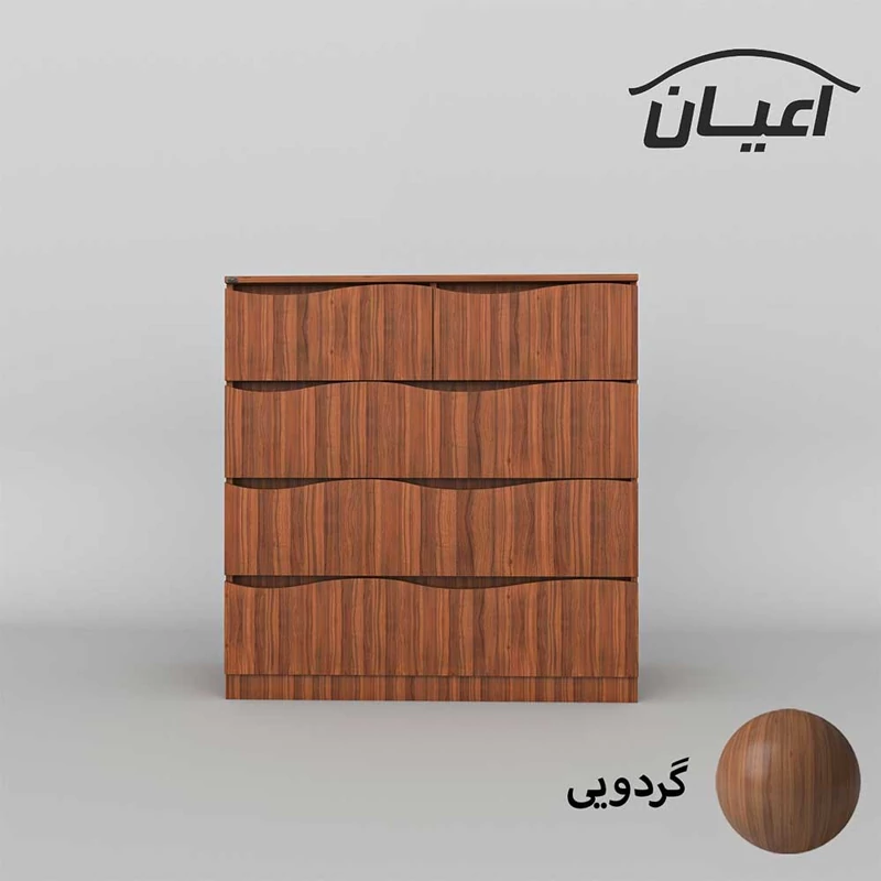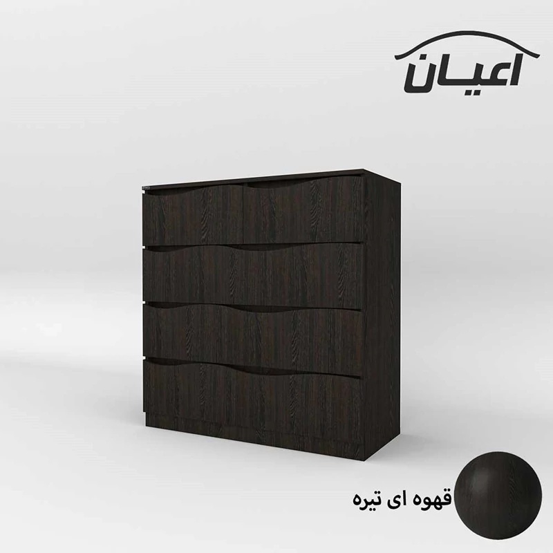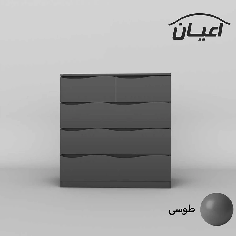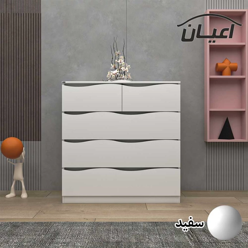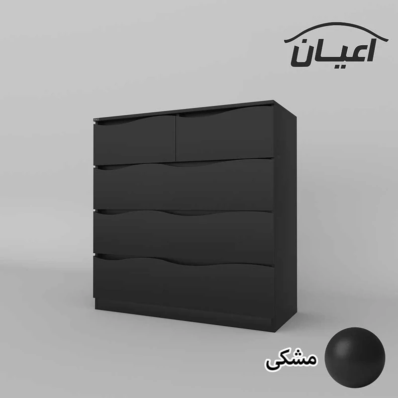 دراور اعیان - جنس نئوپان ملامینه شرکتی - سطح ضدخش - طراحی مدرن -دارای پنج کشو بازشو -دستگیره به صورت سی ان سی منحنی - بسته بندی با لوگو و برند اعیان.