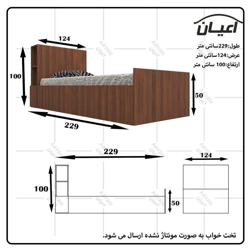 تخت خواب یکنفره اعیان مدل FH553 سایز 120x200 سانتی متر(هزینه ارسال پس کرایه)