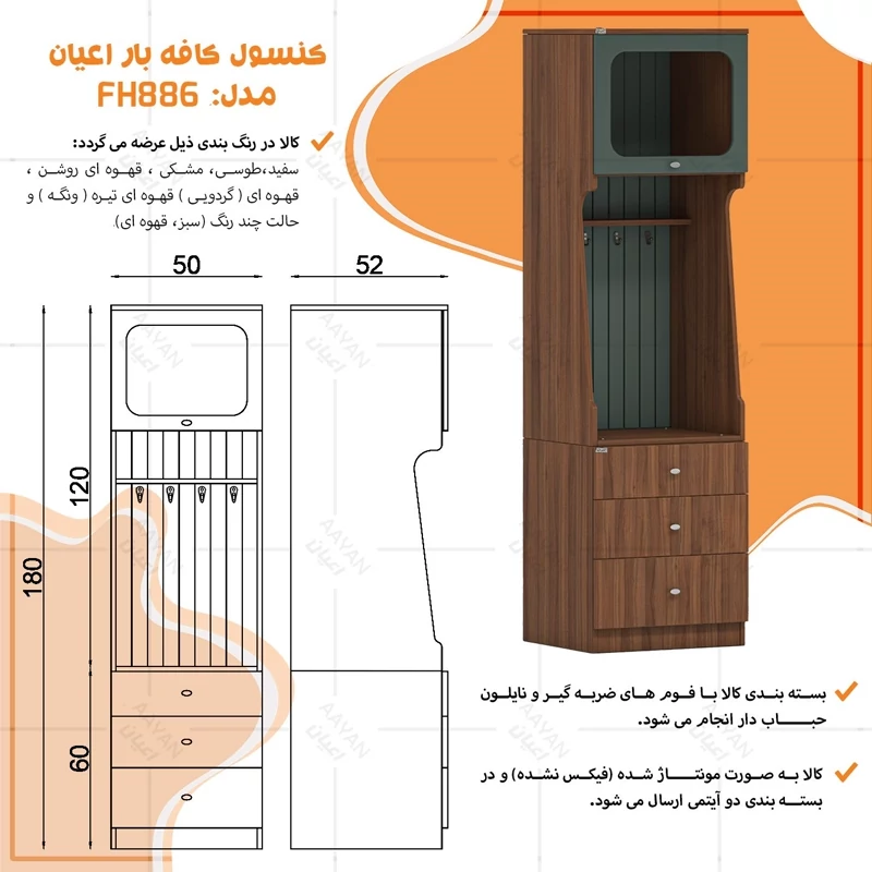 کنسول اعیان مدل کافه بار FH886 طول 50 سانتی متر (پس کرایه)