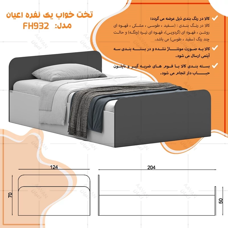 تخت خواب ملامینه یک نفره اعیان مدل FH932 سایز 120x200 سانتی متر (پس کرایه)