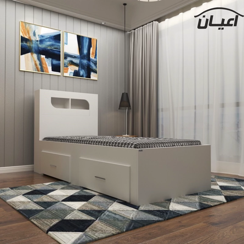 تخت خواب یک نفره اعیان-جنس نئوپان ملامینه شرکتی-کلگی بالا دارای باکس می باشد-دارای دو کشو(به صورت چرخدار) است - کالا فاقد تشک می باشد-سایز تشک مناسب 120x200سانت است-کالا به صورت مونتاژ نشده(جدا از هم) ارسال می شود - بسته بندی کالا به صورت چهار آیتمی است - جنس کفی تخت نئوپان خام به صورت دو تکه است-رنگ بندی کالا در آلبوم قابل مشاهده است(در رنگ های سفید/مشکی/قهوه ای/قهوه ای روشن/قهوه ای تیره (ونگه)/طوسی و چند رنگ(سفید و قهوه ای) تولید می شود)-هنگام خرید و دریافت کالا به بسته بندی و لوگوی برند اعیان دقت فرمایید.