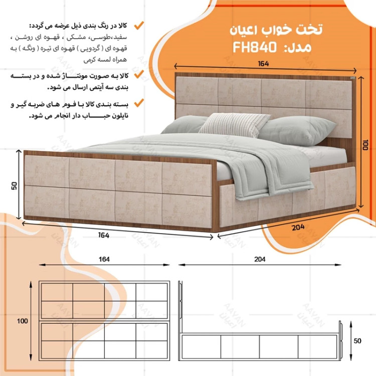 تخت خواب دونفره اعیان مدل FH840 سایز 160x200 سانتی متر (پس کرایه)