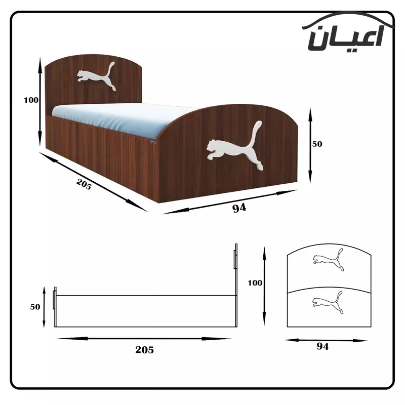 تخت خواب یک نفره اعیان مدل FH459 طرح اسپرت(هزینه ارسال پس کرایه)