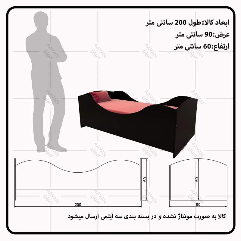 تخت خواب یکنفره اعیان مدل FH656 سایز 90x200 سانتی متر(ارسال با باربری.هزینه ارسال پس کرایه)