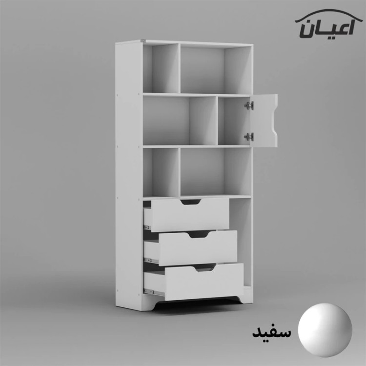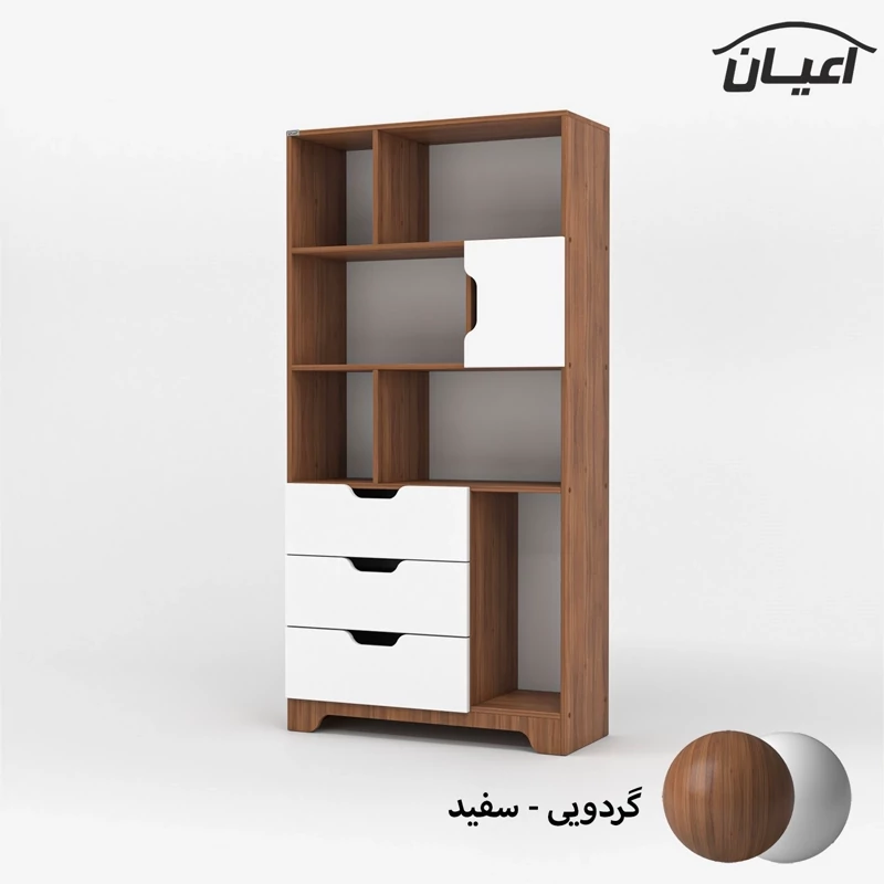 کتابخانه اعیان-جنس مغزی نئوپان با روکش ملامینه شرکتی-دارای سه کشو با ریل سه تکه و یک درب کمدی-درب یه صورت آرامبند-دارای شش فضای مجزا-دستگیره ها به صورت سی ان سی منحنی می باشد -با طراحی مدرن و کاربردی-کالا به صورت مونتاژ شده و به صورت تک آیتمی ارسال می شود.