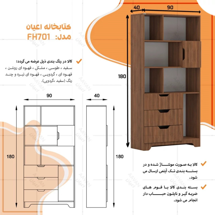 کتابخانه اعیان مدل FH701 ( ارسال با باربری - هزینه ارسال پس کرایه)