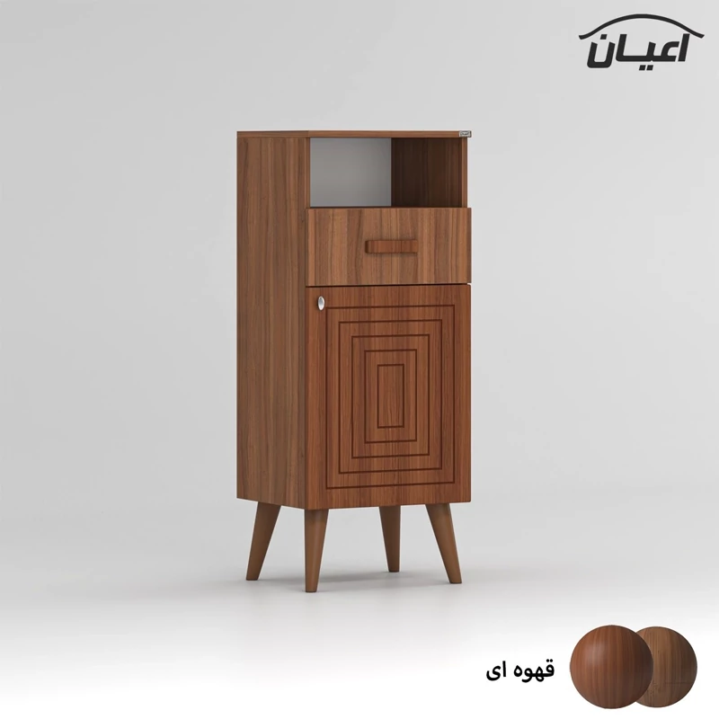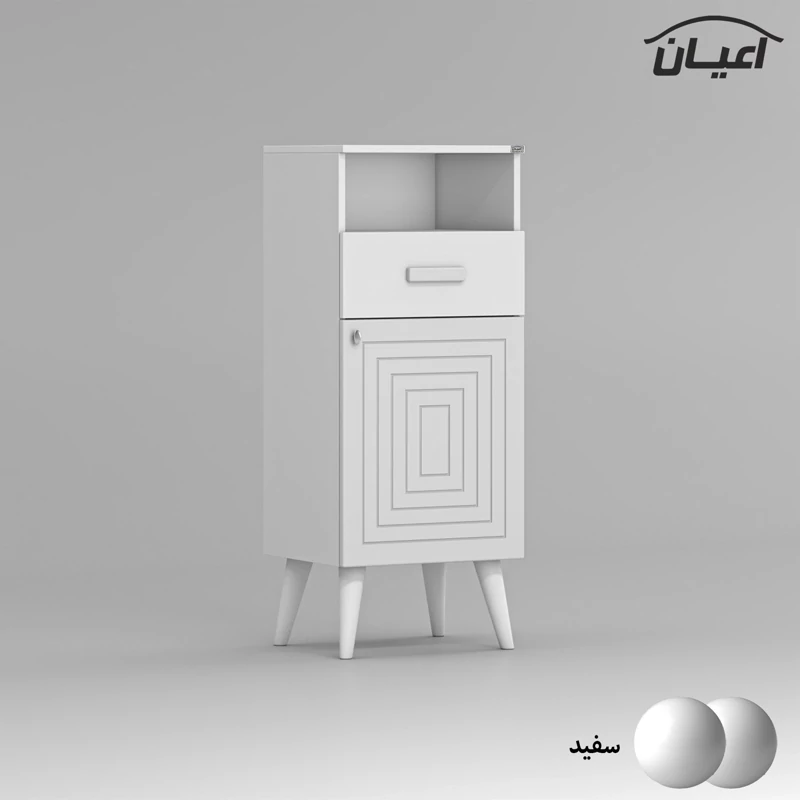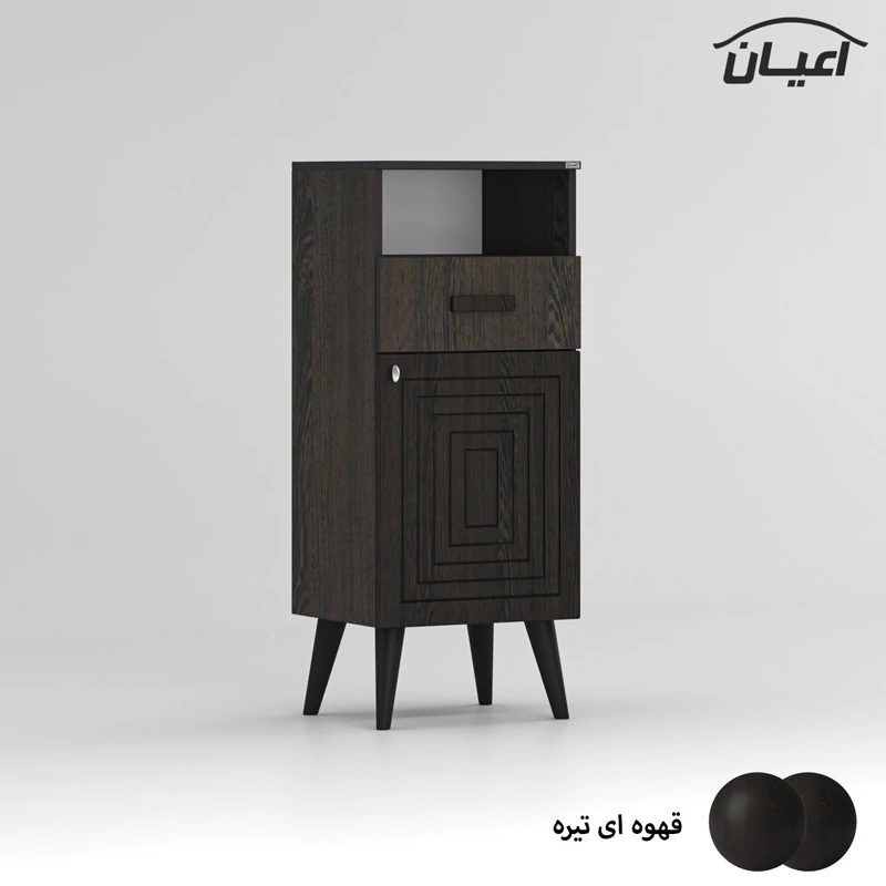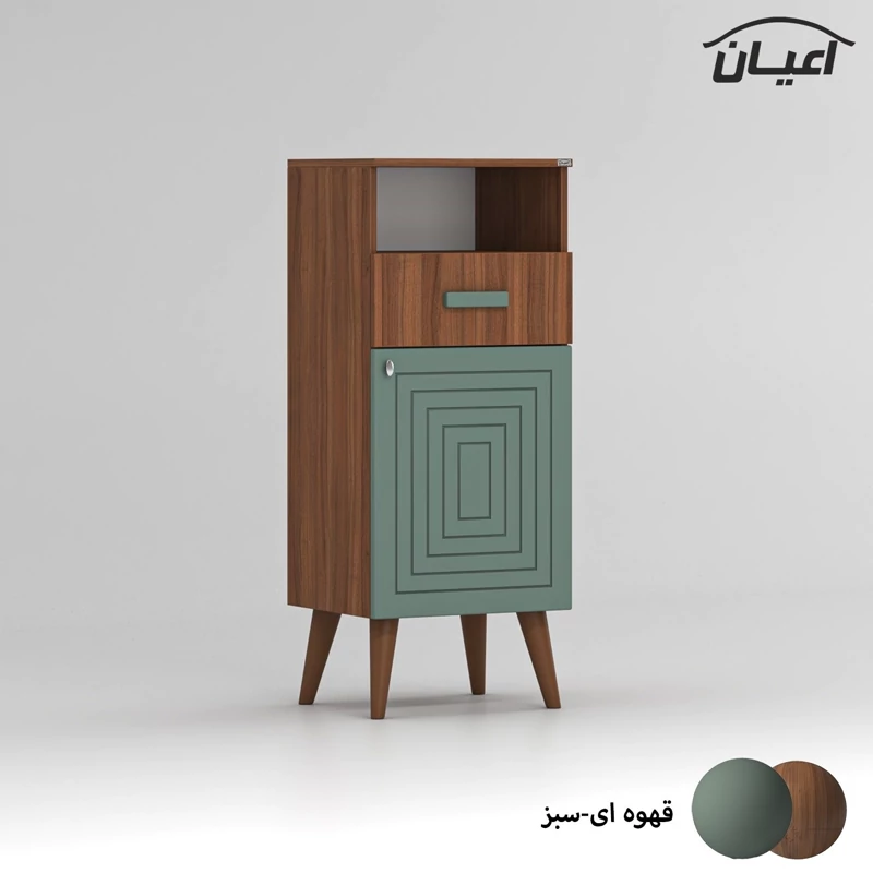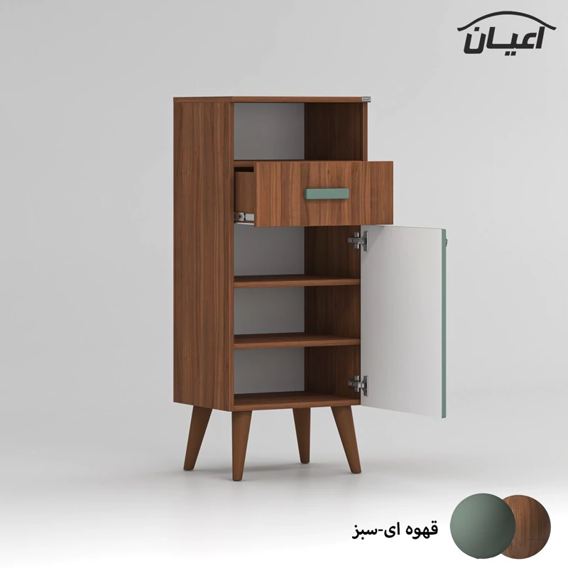جاکفشی اعیان ، جنس بدنه : مغزی نئوپان با روکش ملامینه ، جنس درب کمدی : مغزی ام دی اف با روکش وکیوم (به دلیل تفاوت متریال بدنه و درب، شاهد تفاوت رنگی بین بدنه و درب در رنگ بندی کالا خواهیم بود) این جاکفشی دارای یک کشو با ریل سه تکه ساچمه ای و یک درب کمدی با لولای آرام بند با دو طبقه و سه فضا برای قرار دادن کفش است که طبقات متحرک بوده و روی پین (خار) طبقه قرار می گیرند . در بالای فضای کمدی نیز یک شلف قرار دارد که می توانید به عنوان محفظه اکسسوری یا ملزومات مدنظر استفاده نمایید ( در نظر داشته باشید تمامی طبقات قابلیت تنظیم ارتفاع ندارند و تنها قابلیت برداشتن و قراردادن مجدد وجود دارد) ، پایه های کار از جنس پلی اورتان و به شکل مخروطی می باشد که در بسته بندی کالا قرار دارد و شما بایستی پایه ها را با دقت ببندید ، دستگیره های محصول به صورت تک پیچ استیل است و برای حفظ سلامت کالا و بسته بندی این دستگیره ها از داخل بسته می شود لطفا پس از بازکردن کار با استفاده از پیچ گوشتی جهت آن را تغییر دهید. این کالا را فقط با برند و لوگو اعیان تهیه کنید ، این کالا در رنگ بندی (سفید ، طوسی ، مشکی ، قهوه ای روشن ، قهوه ای(گردویی) ، قهوه ای تیره(ونگه) و حالت چند رنگ (مشابه تصاویر آلبوم شامل دو رنگ سبز ، قهوه ای است) تولید و عرضه می گردد. جاکفشی مذکور در یک بسته بندی حباب دار با لوگوی اعیان و به صورت مونتاژ شده (نصب شده) قرار دارد . در نظر داشته باشید همواره چند درجه اختلاف رنگ بین تصاویر کالا و کالای ساخته شده وجود دارد.