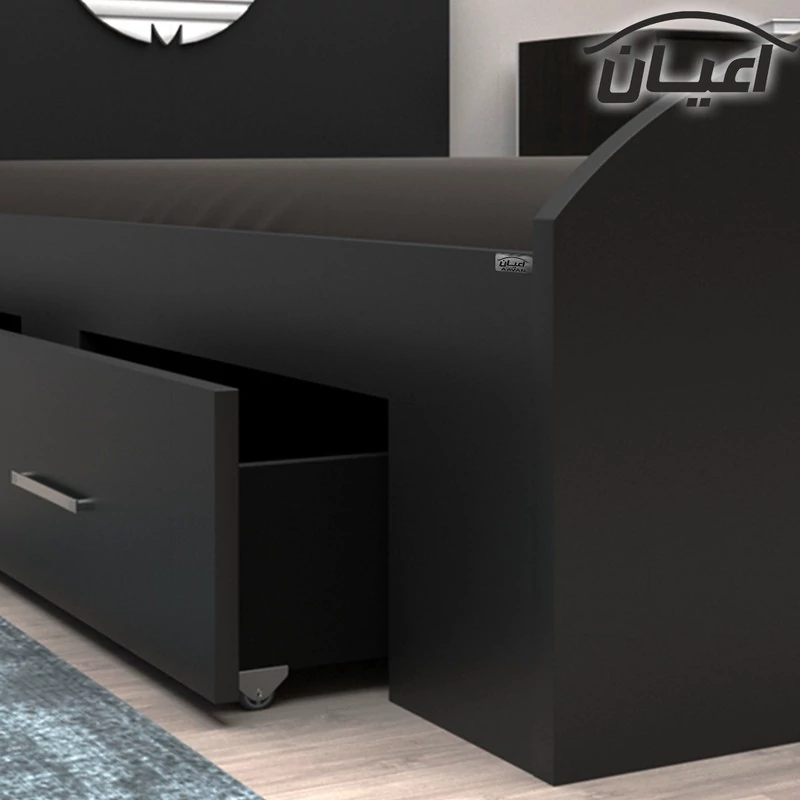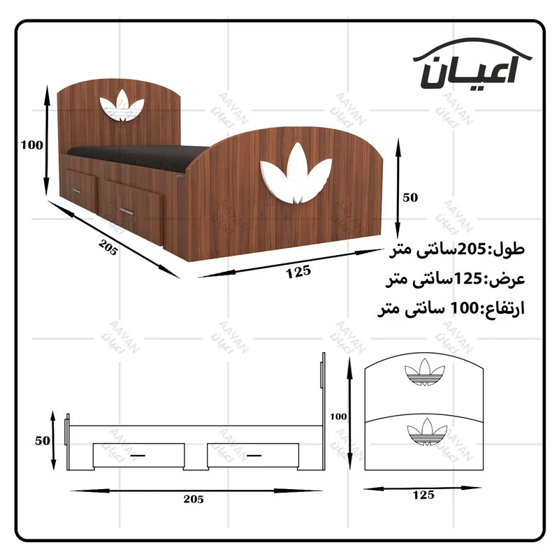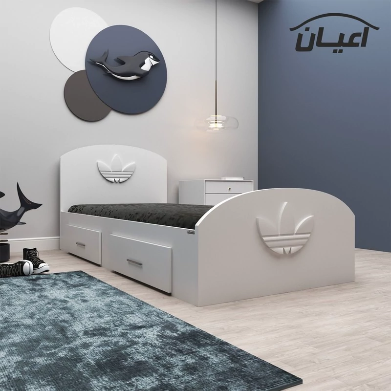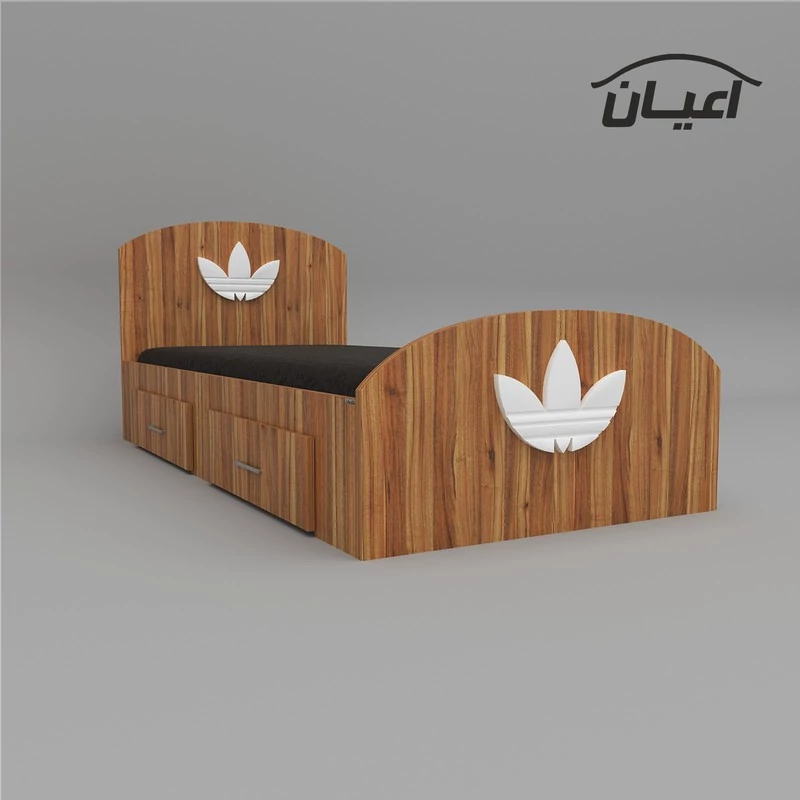 تخت خواب یک نفره اعیان طرح اسپرت.جنس نئوپان ملامینه شرکتی.جنس لوگو روی تخت وکیوم می باشد در رنگبندی متنوع و در ابعاد استاندارد.کالا فاقد تشک می باشد جهت تهیه تشک،سایز استاندارد 200×120 سانت مناسب است.جنس کفی تخت نئوپان خام و به صورت دوتکه بوده که همراه با چند جفت فاق و زبانه به عنوان پایه در بسته بندی جداگانه ارسال می شود.تخت دارای دو کشو به صورت چرخدار است.کشوهای تختخواب امکان قرارگیری در سمت چپ یا راست را دارند. این محصول به صورت مونتاژ نشده در چهار بسته بندی همراه با بروشور راهنمای نصب با لوگو و برند اعیان ارسال می شود.