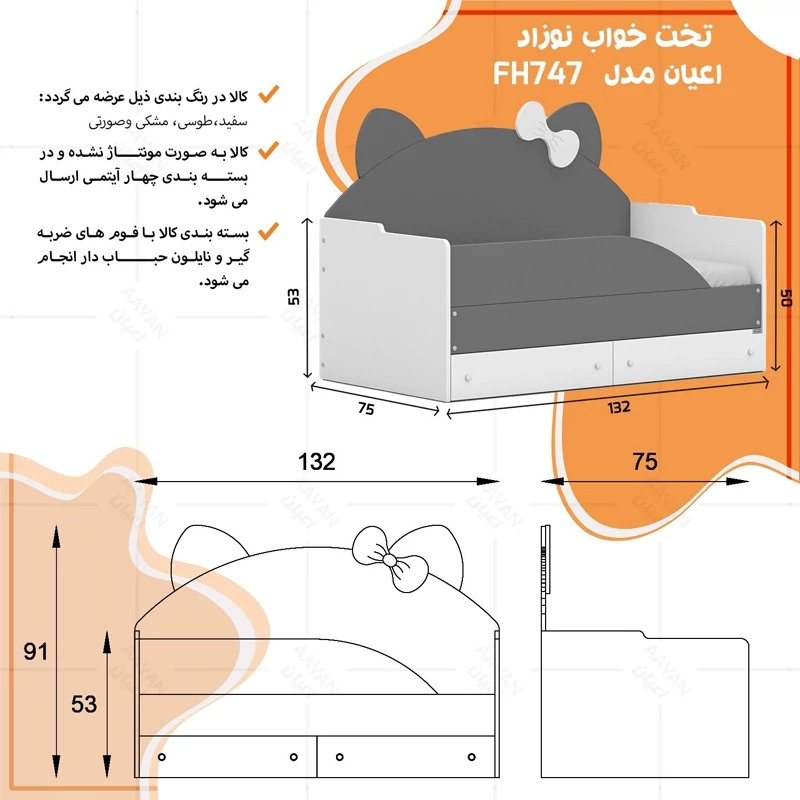 تختخواب کودک اعیان مدل FH747 ( ارسال با باربری - هزینه ارسال پس کرایه)